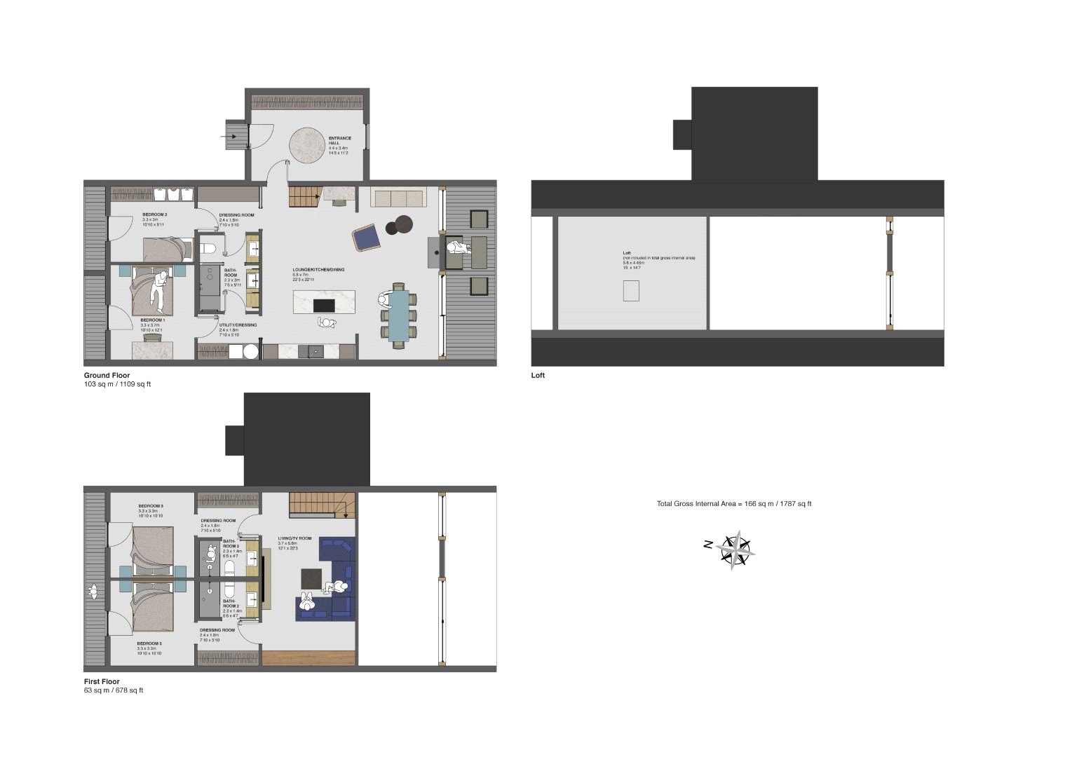 Dressing Room 3 With 2.4 metres of wardrobes, leading to the ensuite bathroom 3 With a walk-in shower, vanity unit, sink and WC.
