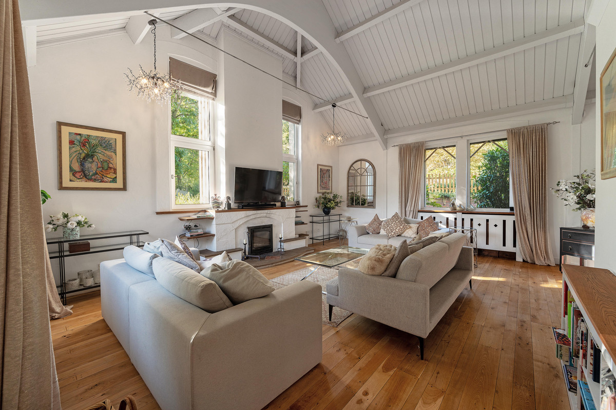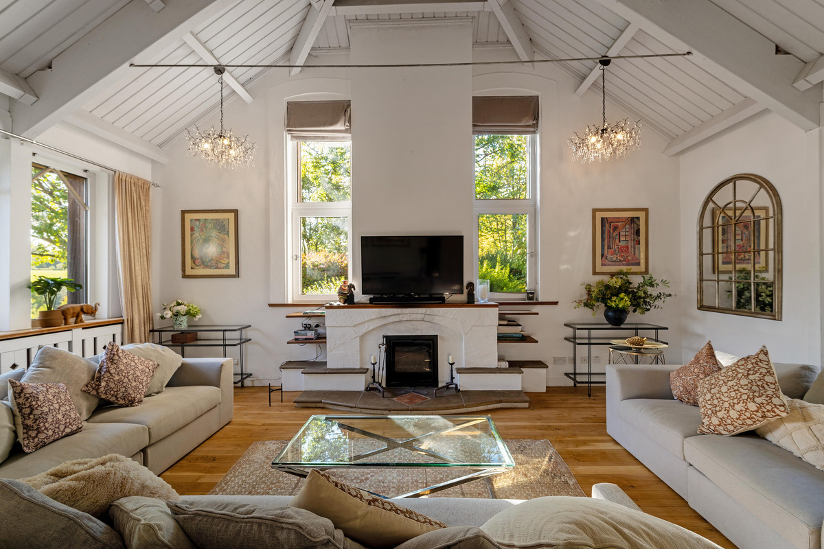 Inside, light-filled spaces combine elegance with comfort: a triple-aspect sitting room with open fire and balcony connects to a dining hall seating any number of guests, creating a superb setting for entertaining.