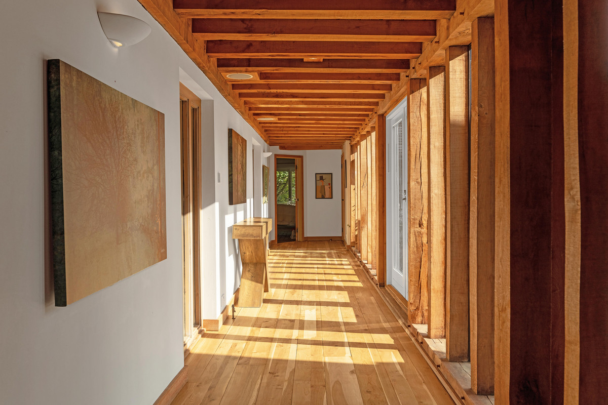 Set behind high electric gates and approached via a granite driveway the main house is hidden from public view, with a western red cedar cladding that has gracefully silvered over time sits proudly above its valley setting. The parking area leads to a pair of large heavy wooden gates lead to an entrance courtyard.