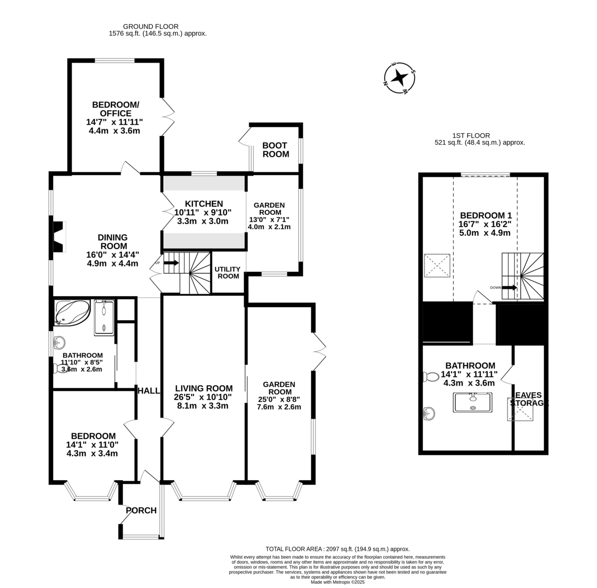Upstairs, the property boasts a spacious principal bedroom complemented by a large bathroom and eaves storage.