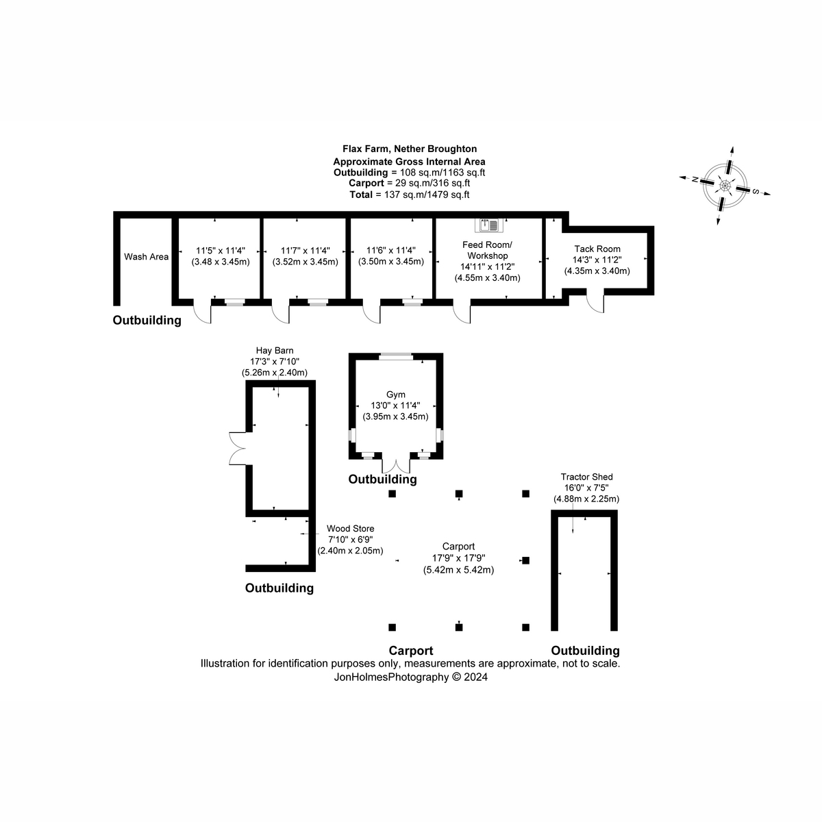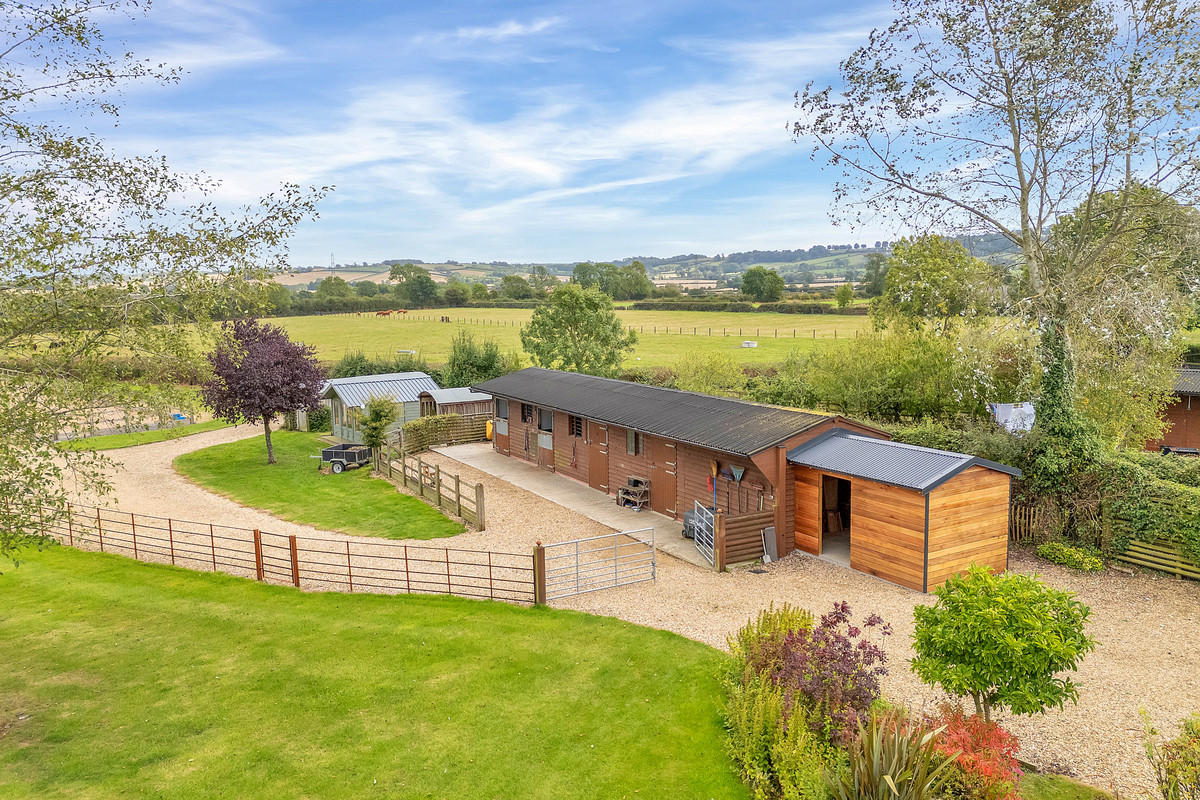 A timber range of stables and outbuildings provide three loose boxes, a feed room, tack room, workshop, hay barn and tractor store.