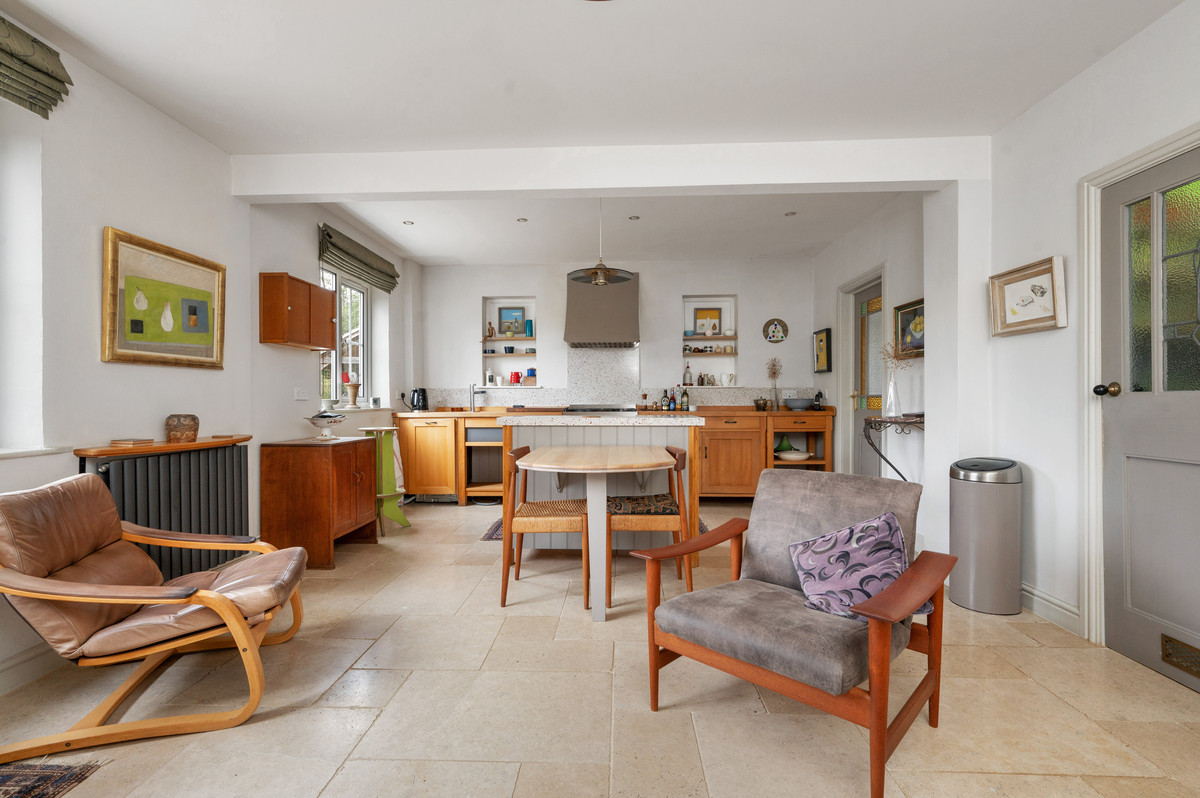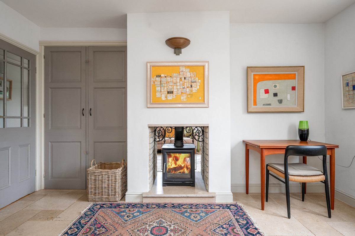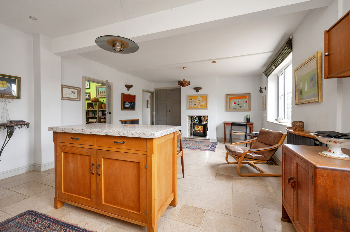 Without doubt the heart of the home is the generous living kitchen, with well defined kitchen and living areas. A particular feature of the kitchen is its stylish design, showcasing bespoke Habitat 1960’s free standing, solid beech kitchen, as well as a ‘must have’ pantry and double sided log burner which connects through to the adjacent sitting room.