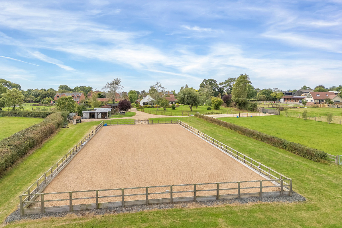The equestrian facilities at Flax Farm are excellent and well planned. The set up allows for ease of management, being fully visible from the main house. The paddock land and outbuildings are accessed via a separate yard entrance, offering ease of access and turning space for larger vehicles such as horse boxes or lorries.
