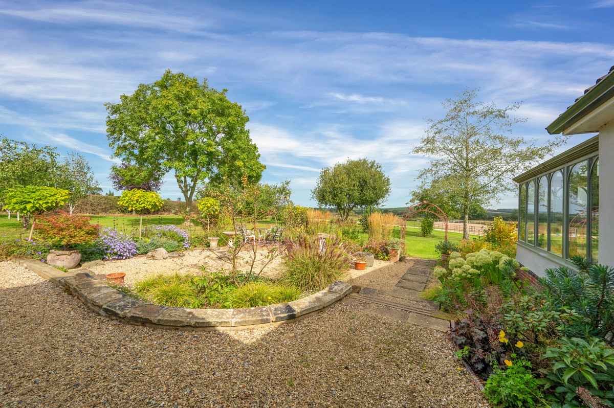 Flax Farm enjoys particularly lovely gardens which are beautifully maintained. There are large level lawns, heavily stocked boarders providing seasonal colours and a nice selection of mature trees. The gardens offer a degree of privacy and fine setting for this rural home. To the front of the property is an extensive ‘in – out’ gravelled driveway, with forecourt parking area providing off road parking for numerous vehicles, as well as giving access to an oak framed car port.