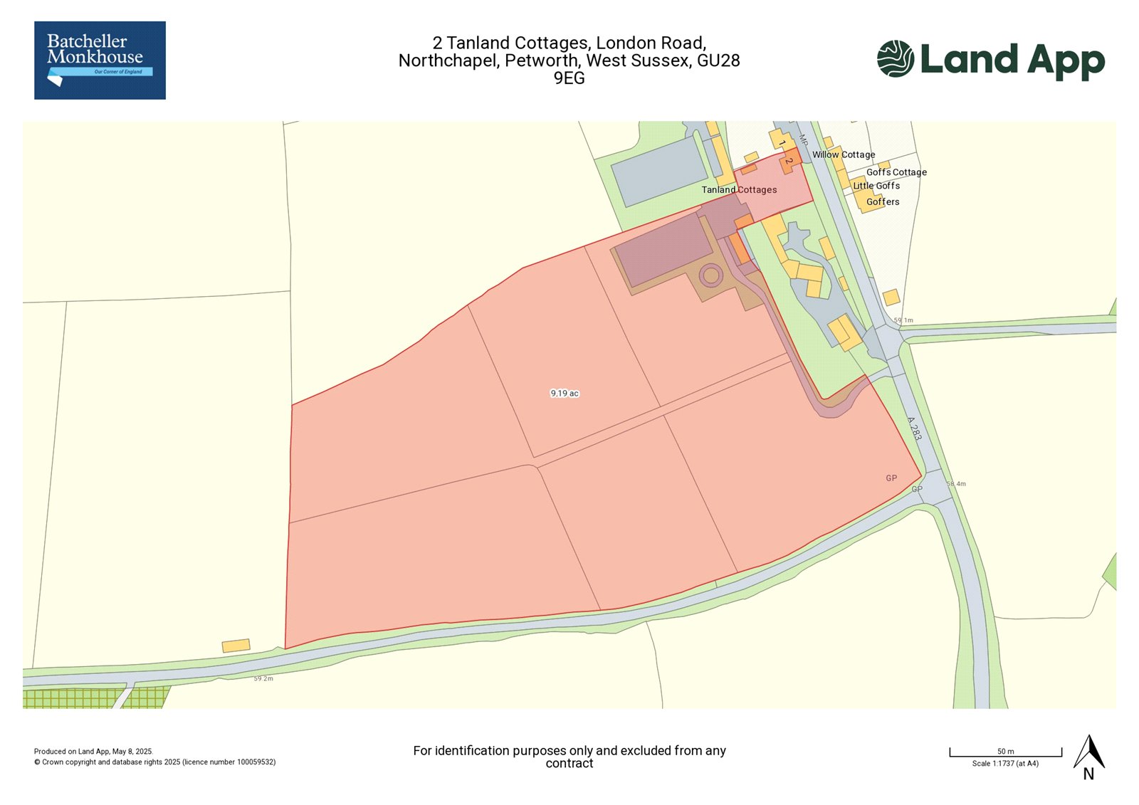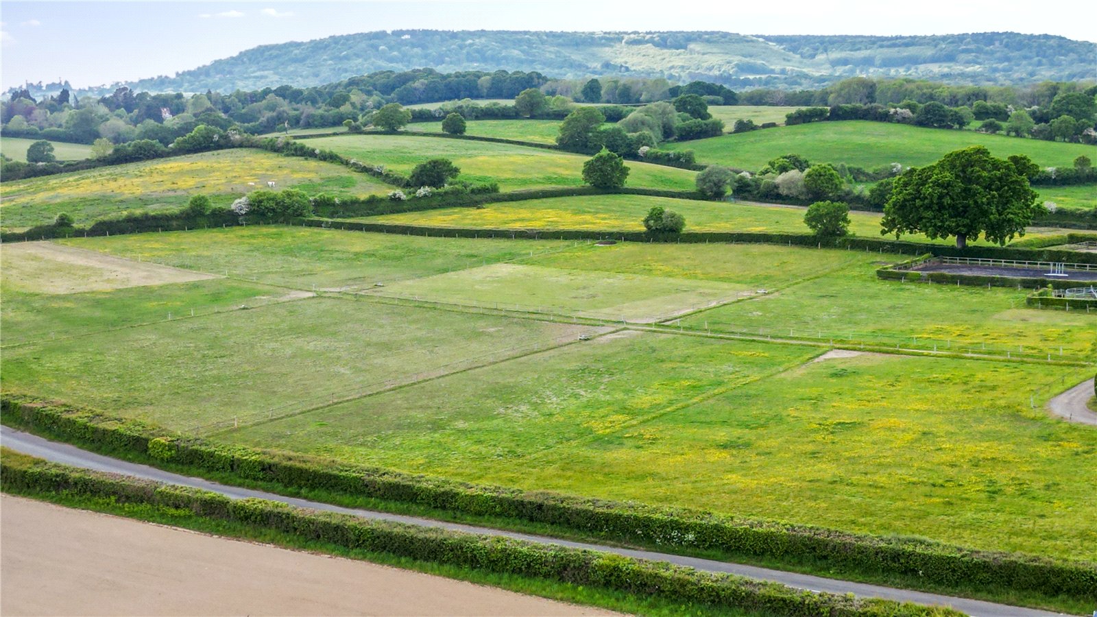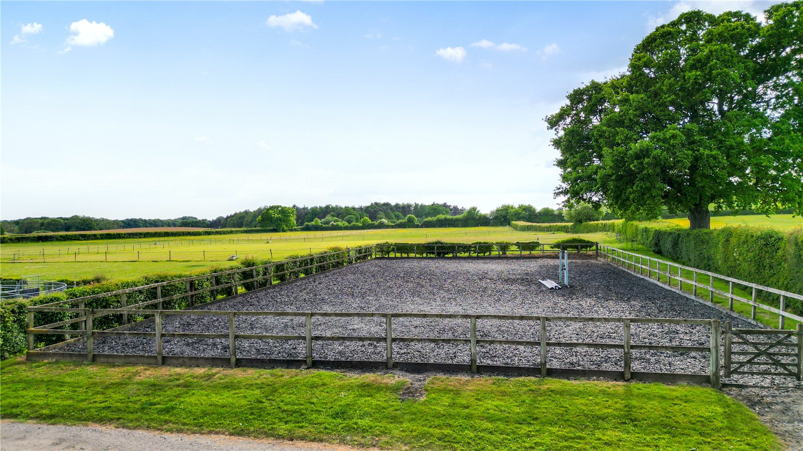 A private drive leads from London Road to the hard surface parking area in front of the house with access to all the equestrian facilities a stone's throw away. There is a hay store and very well thought out feed room with sink, heater and plumbing for washing machine. General stores, tack room (secure), 4 stable boxes with auto drinkers and lighting, floodlighting over the 60m x 20m menage and floodlit walker (Aldershot). The land is divided into useful paddocks, all with their own water supply. There are 2 hardstanding muck heaps in the fields, and an additional muck heap adjacent to the stabling. In total approximately 9.19 acres.