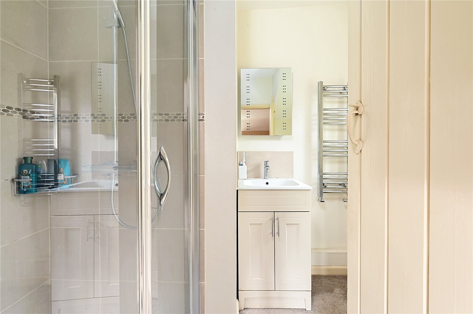 En-Suite Shower Room Comprising sink with cupboard under. Low level w.c., shower cubicle.
