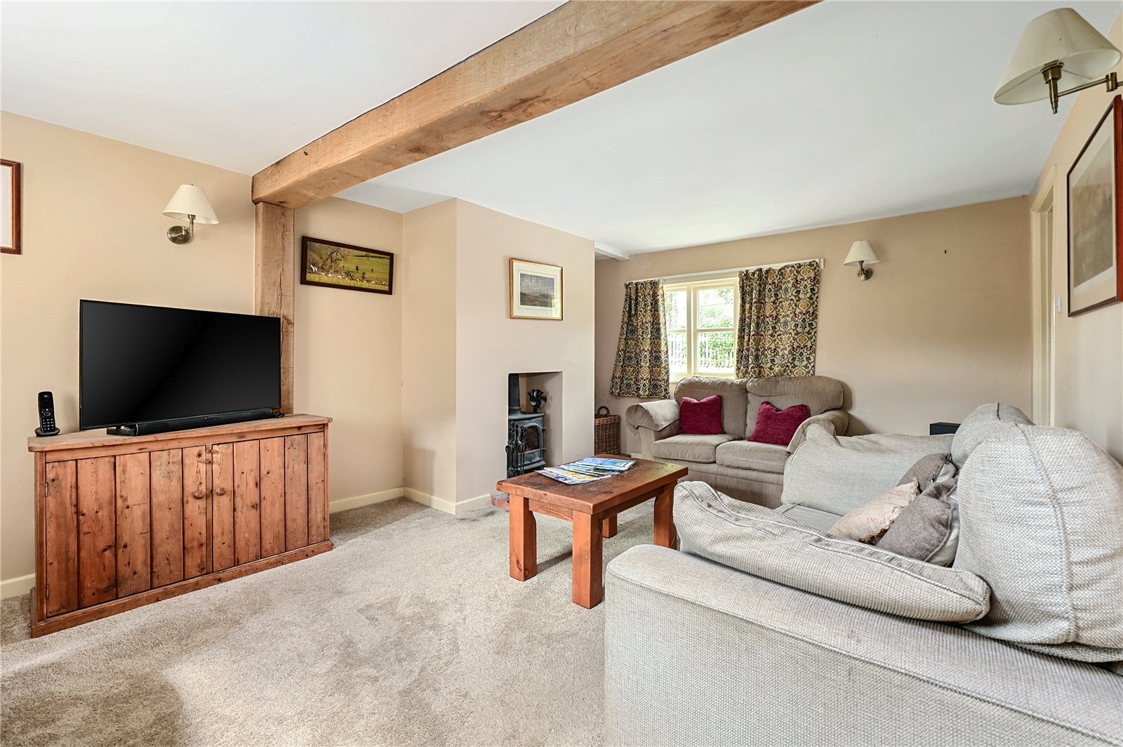 Sitting Room with windows to front and rear, log burner, carpet and exposed beams.