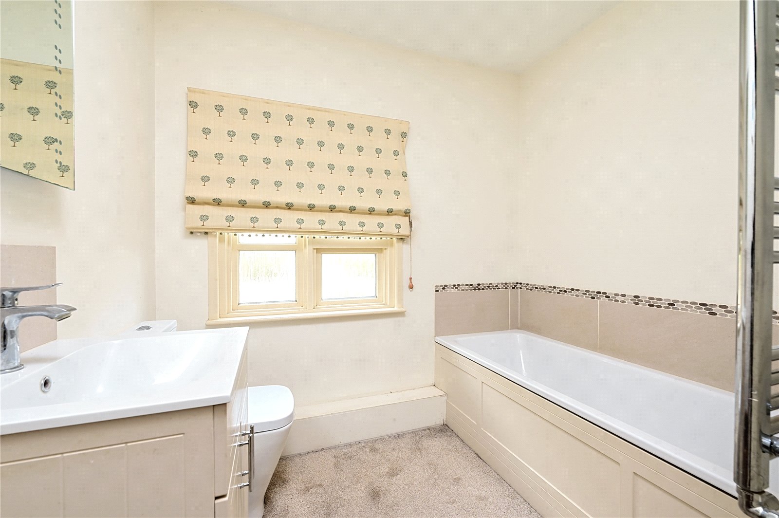 Family Bathroom Store cupboard housing hot water cylinder, low level w.c., sink unit with cupboard under and mixer tap, bath and ladder style radiator.