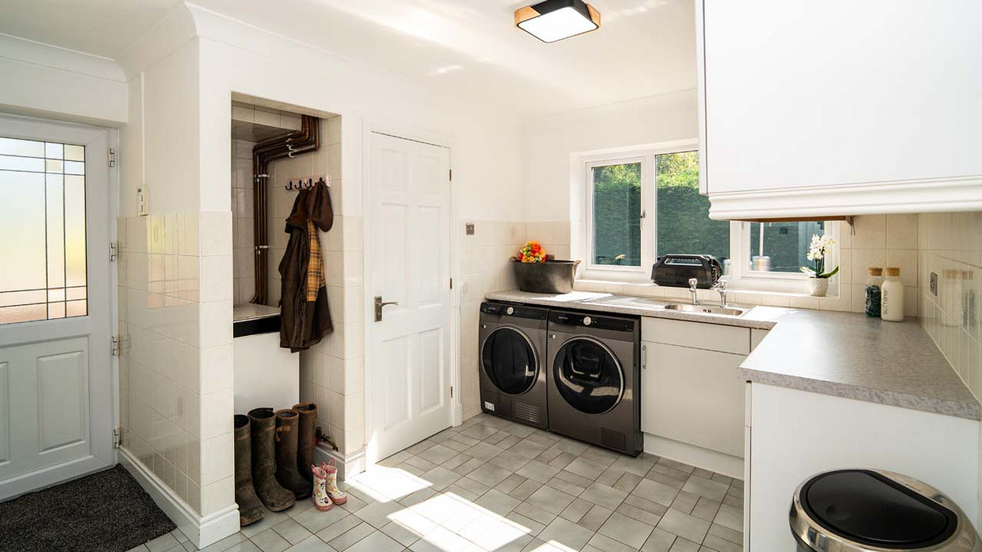 At the heart of the home, the kitchen and dining room are designed for connection, with ample prep space for cooking, room for a family table, and lovely views over the driveway and front gardens. An adjoining utility keeps everyday practicalities neatly out of sight.
