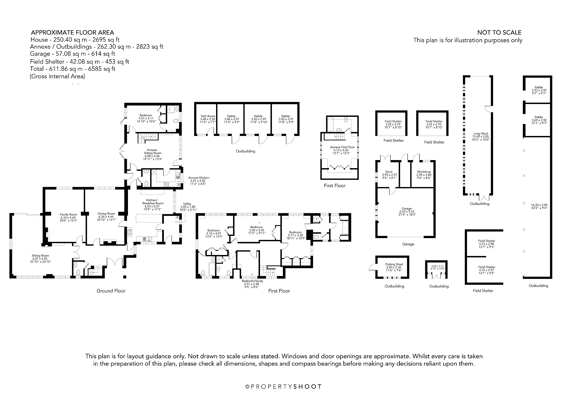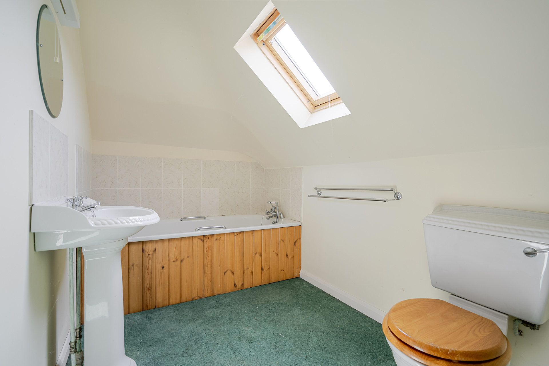Interlinked but independently accessible, the two-bedroom annexe provides excellent space for multi-generational living, guest accommodation or staff quarters. The layout includes a ground floor sitting room with French doors, a fitted kitchen, cloakroom, and one double bedroom with en suite shower room. Upstairs, there is a second dual-aspect bedroom with its own en suite bathroom. This annexe benefits from its own entrances at both front and rear, offering privacy and flexibility.