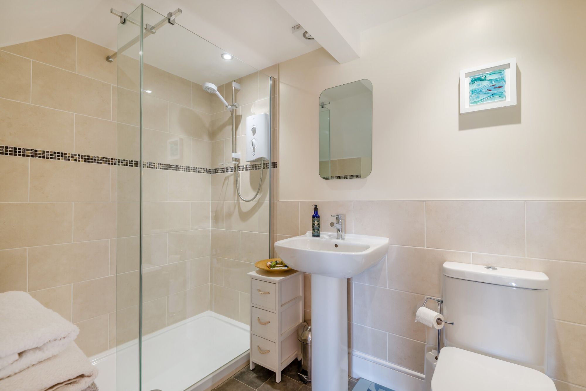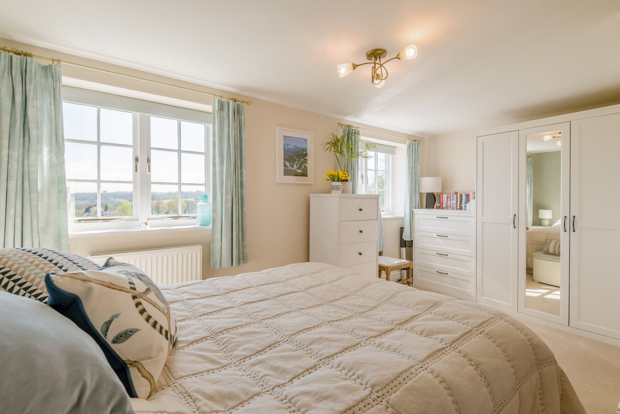 Upstairs there are four double bedrooms off a split landing. The principal bedroom has a dual aspect, making the most of the views. It has a stylish, modern ensuite with a double walk-in shower.