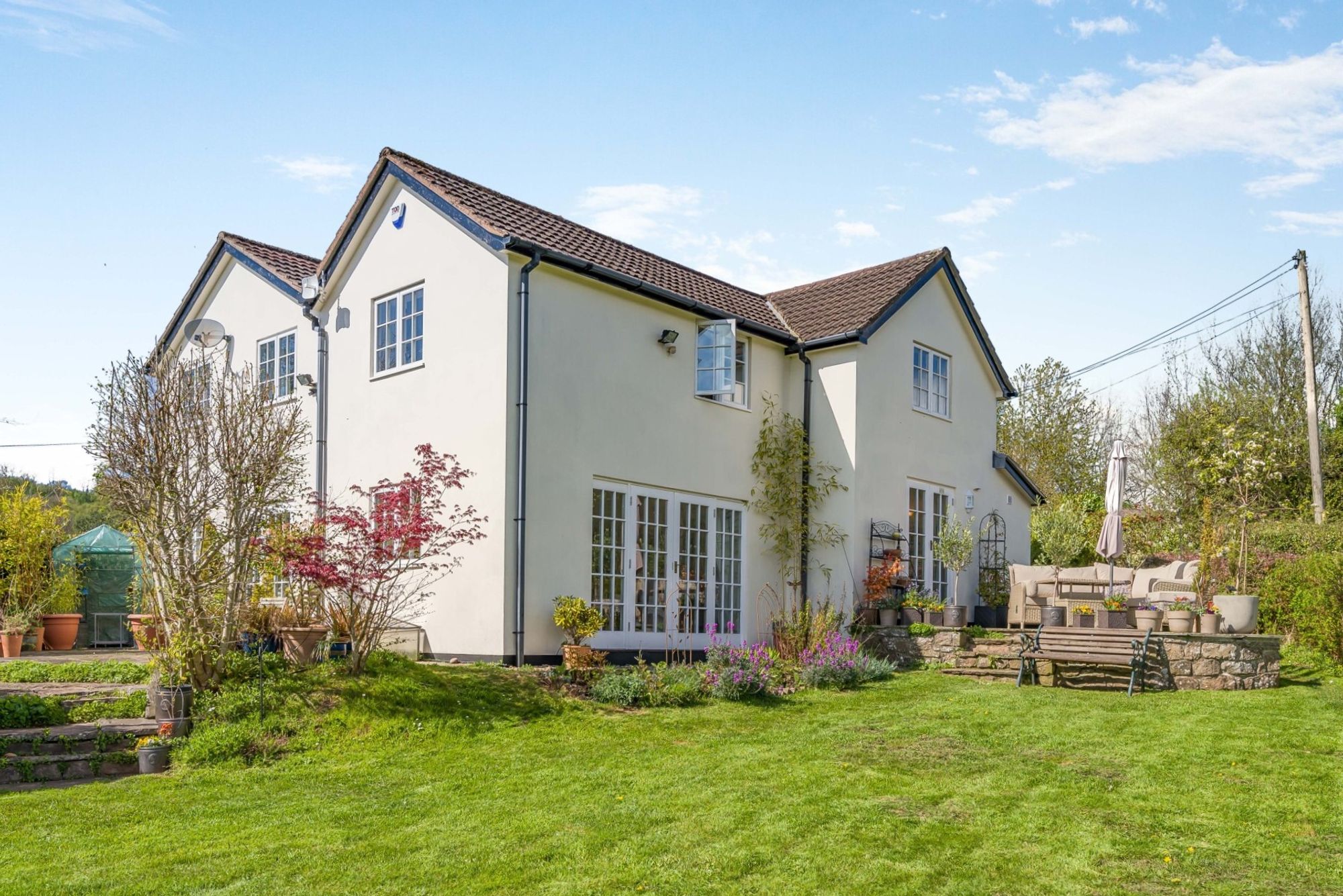 This lovely rural property offers an idyllic lifestyle opportunity, set in a tranquil valley, with panoramic views of the Monmouthshire countryside, a pleasant garden, equestrian facilities, nearby access to woodland and countryside for riding, walking and outdoor pursuits, with good commuter access, flexible work-from-home space and superfast fibre broadband.