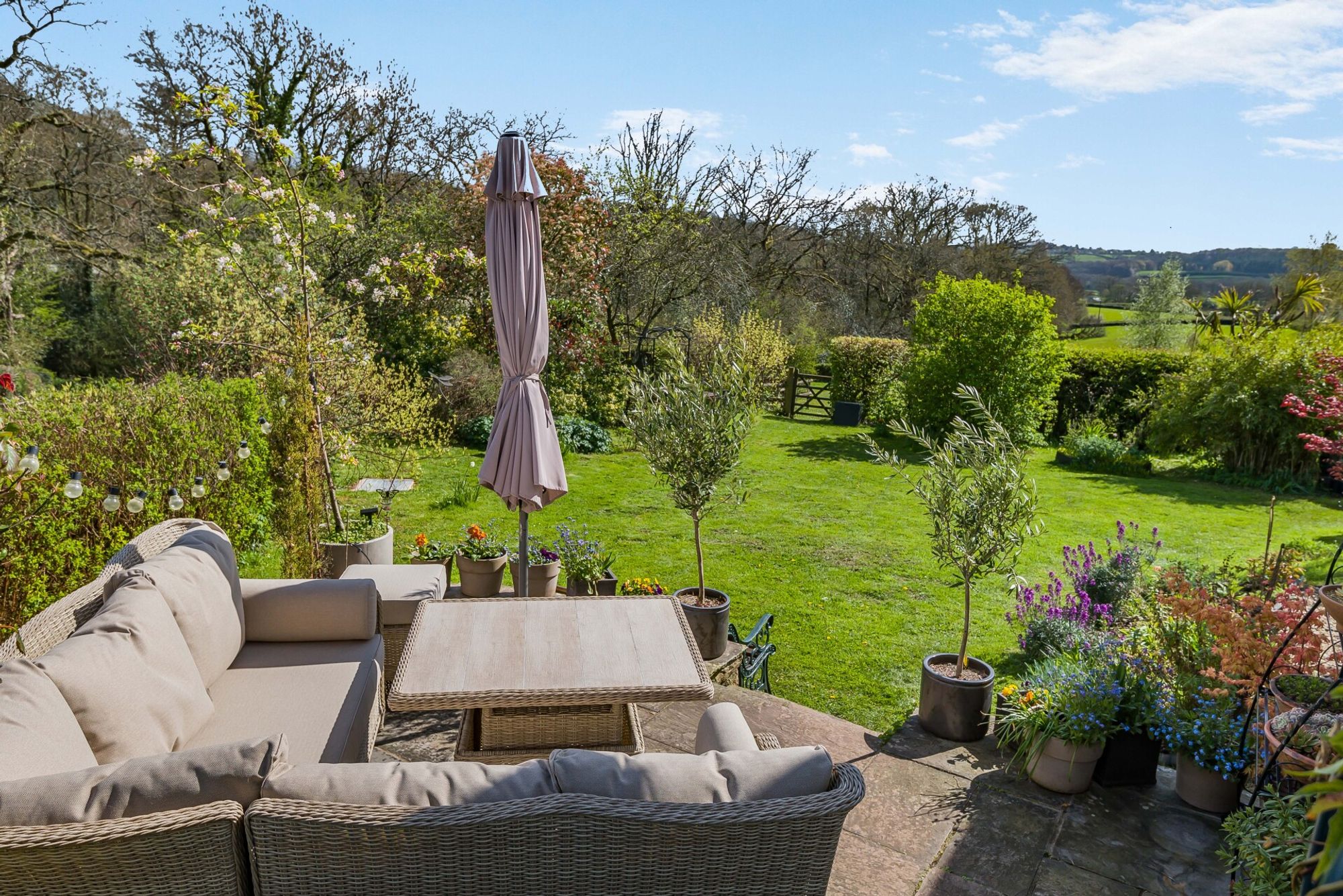 The peaceful gardens and uninterrupted rural views are a real feature of this property. So, too, are the equestrian facilities and excellent outriding.