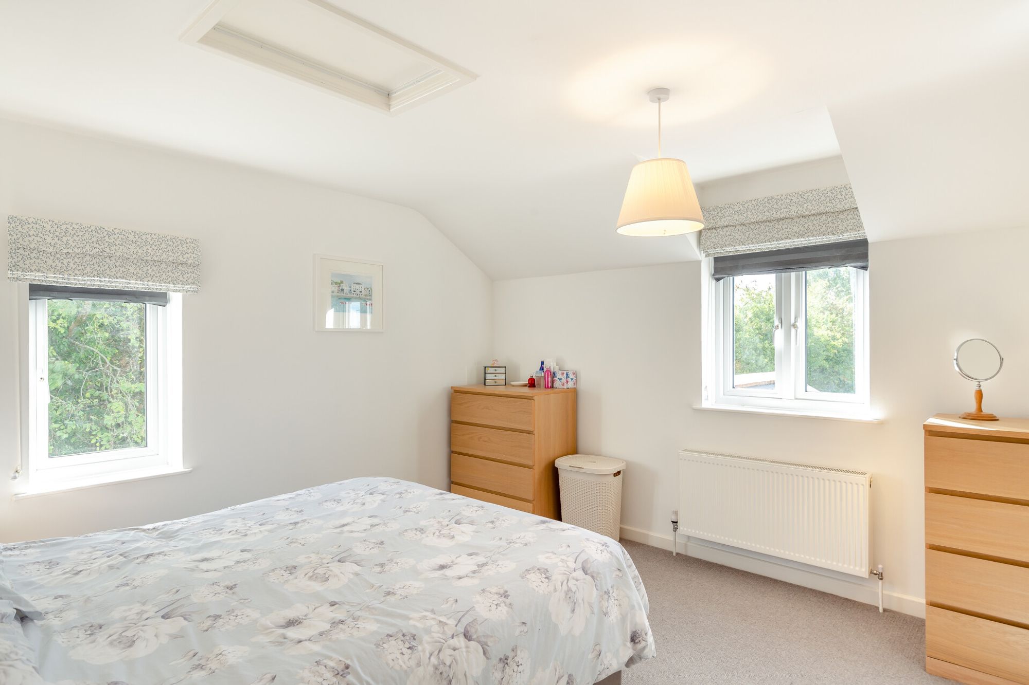 The potential annexe bedroom is a standout feature of the home, with its generous proportions, vaulted ceiling, and exposed beams. A skylight and dual-aspect windows flood the space with natural light, creating a serene and airy retreat. The ensuite cloakroom is an added convenience and there is also ample scope to incorporate a useful dressing area.