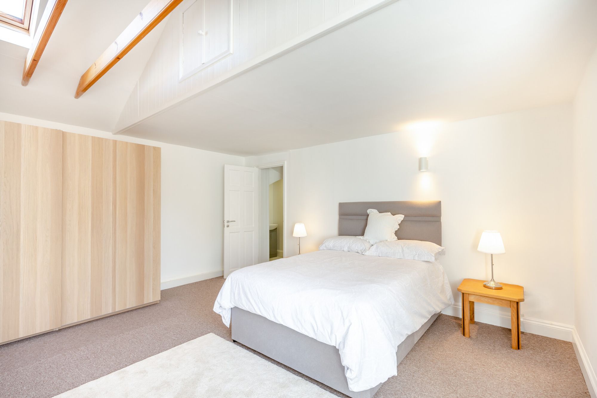 Upstairs, you have a comfortable and well-proportioned main bedroom, enjoying a dual-aspect outlook over the gardens. With clean décor and plenty of natural light, you can also take advantage of the adjacent dressing room, providing excellent storage and convenience.