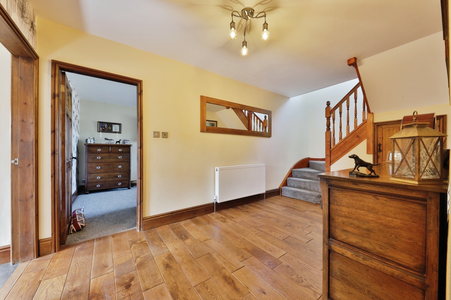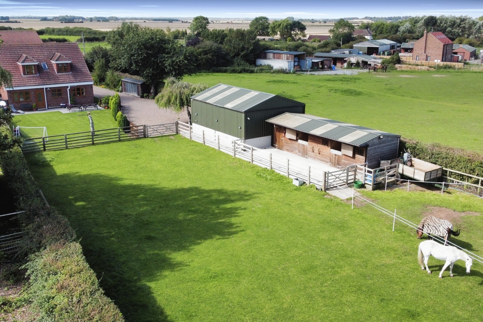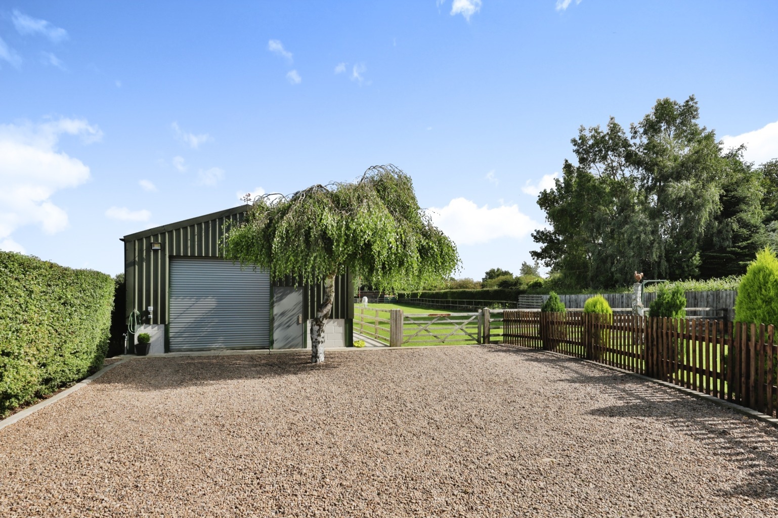 OutsideThe property stands particularly well and is set back from the road behind brick walling and substantial fencing. A large sliding gate gives access to the parking forecourt for multiple vehicles which extends to the side of the property and rear providing additional parking, ideal for horse trailers etc leading to a large steel framed workshop/barn measuring approximately 30ft x 22ft which could be sub-divided for further stables if desired or ideal to run a business from home subject to consents. A five bar gate gives access to the stable yard which is well enclosed. There are two stables and adjoining tack room with power and water laid on beyond which are the large paddocks including a small turn out paddock to the end and a timber hay barn. Also, there is a fenced chicken area/pen and outside dog kennels with run.