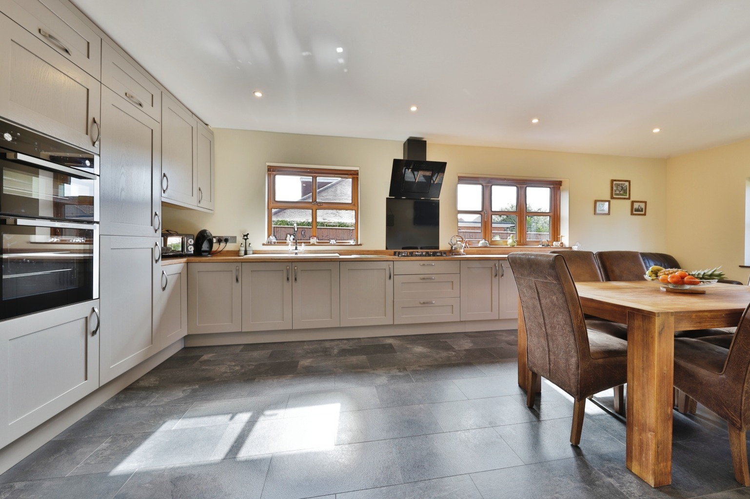 Open Plan Dining/Living/KitchenHaving been re-fitted with a smart range of floor and wall cabinets with complementing worktops and single drainer one and a half bowl sink unit. Integrated appliances include full length refrigerator, full length freezer, double oven and hob plus dishwasher.