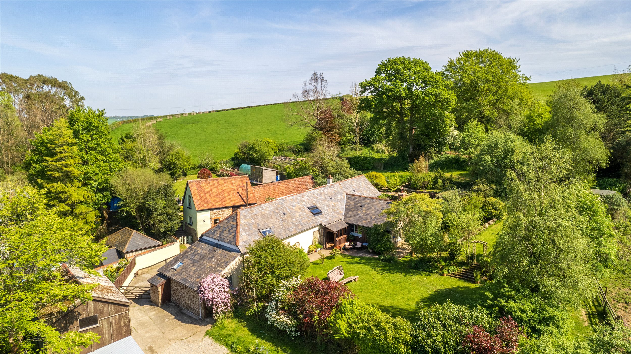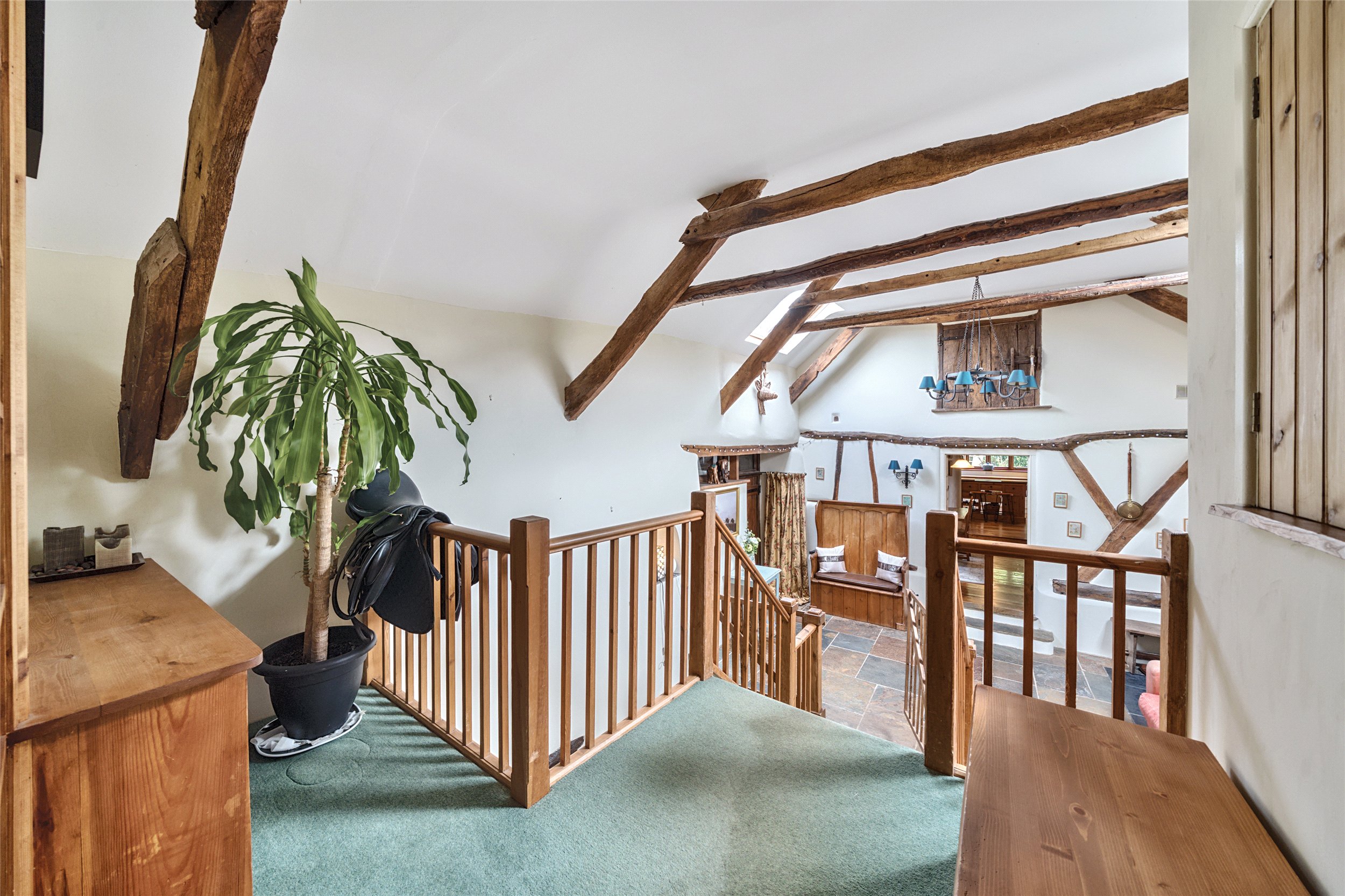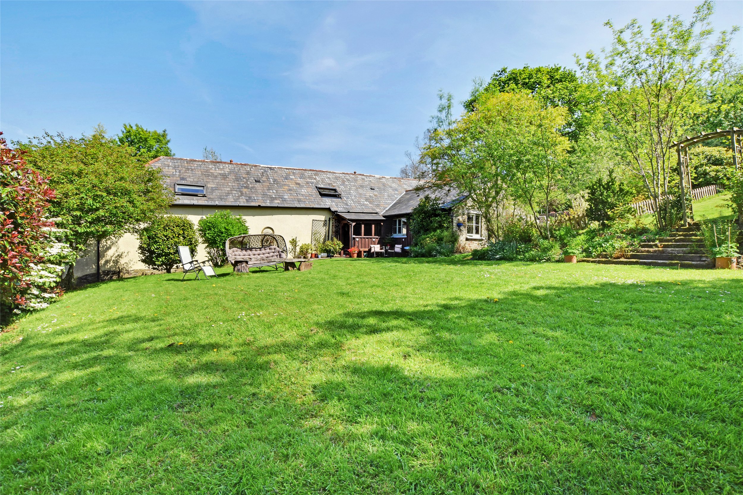 Beyond, a gated paddock connects to the stable yard with three loose boxes, a tack room and store. A productive orchard and kitchen garden features raised beds. There are also privately owned solar panels located on the western side of the garden which help towards generating an additional income and reducing energy bills.