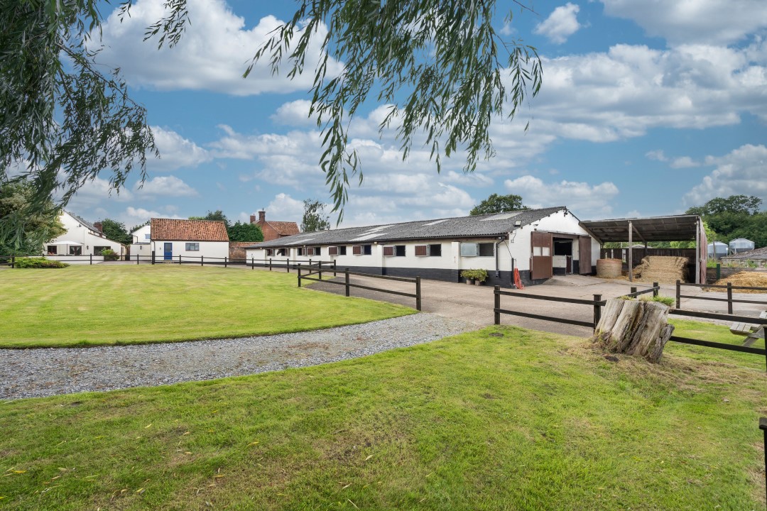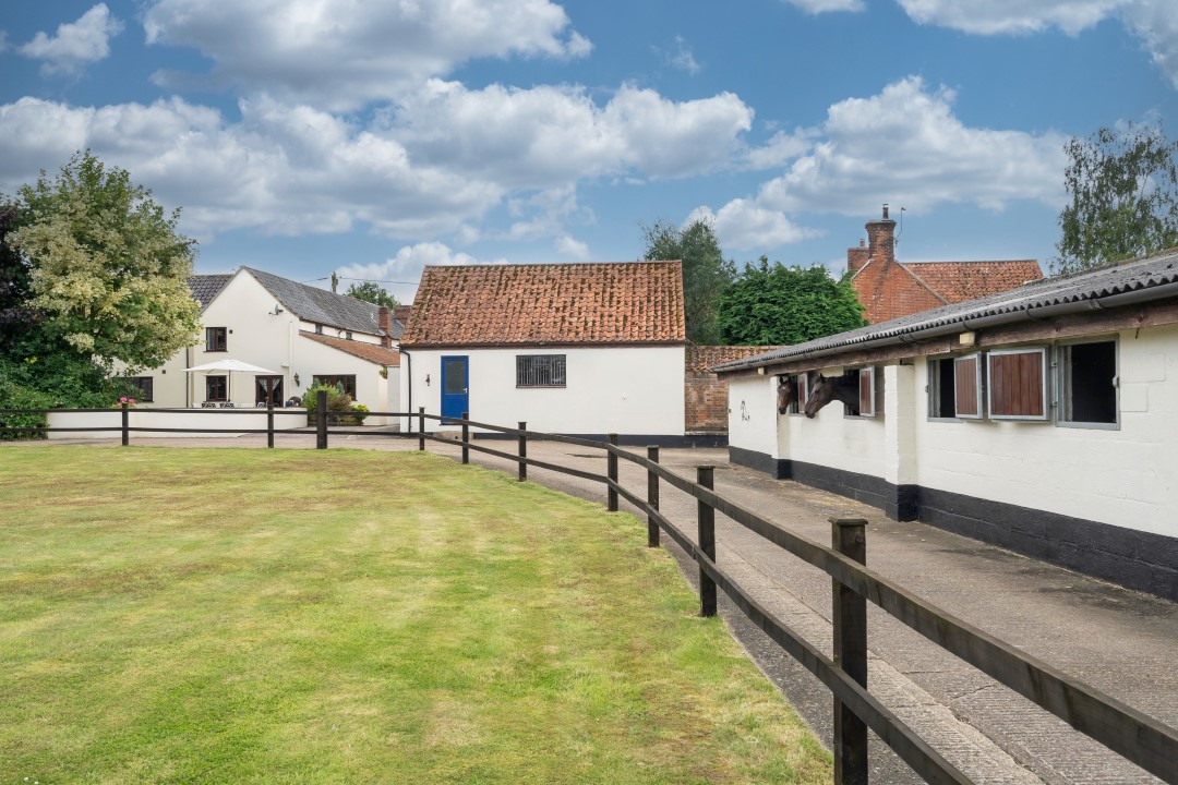 This is a super equestrian property, with around 18 acres of paddocks and 17 stables, a small and large manege, additional barn, woodland and more. The property itself is a delightful former farmhouse, with family-friendly character accommodation, while the location is perfect if you love nature and the countryside, close to the Broads, within easy reach of Loddon and Norwich.