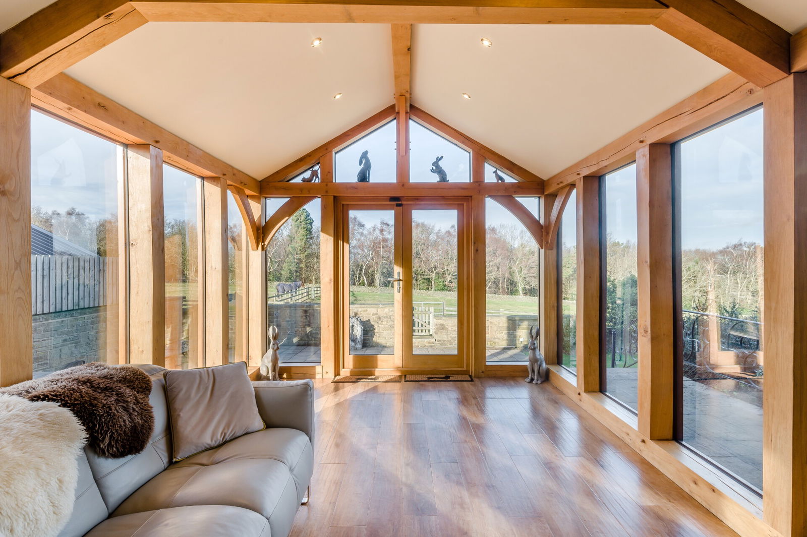 Open to the kitchen is a sitting room. This space flows naturally into the orangery, a striking addition that not only creates another reception room but also floods the adjoining areas with natural light. The orangery enjoys a superb outlook across the rear elevation of the farmhouse, framing views of the estate’s grounds.