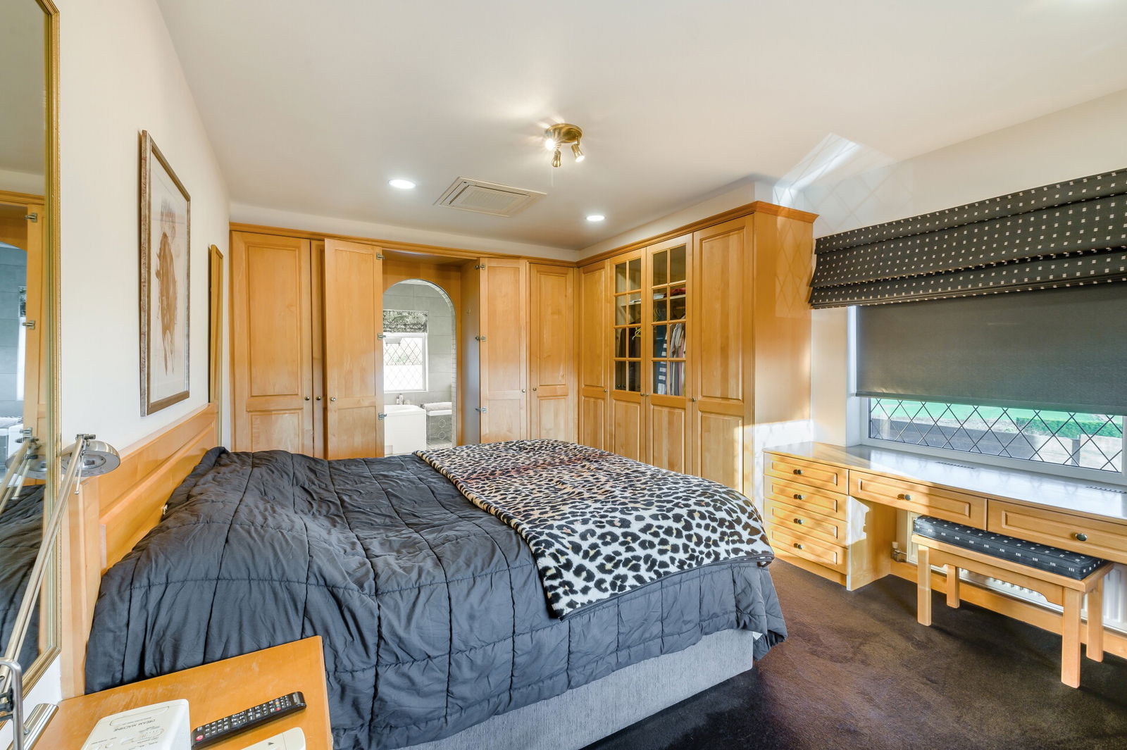 The principal bedroom is a true highlight of the home. Finished with an extensive range of bespoke fitted furniture, the room has been designed with both elegance and practicality in mind. Cleverly integrated cabinetry conceals the discreet entrance to a luxury en-suite bathroom, ensuring a seamless aesthetic while providing the indulgence of a private retreat. This en-suite has been styled to a high specification, offering a sanctuary of comfort and refinement.