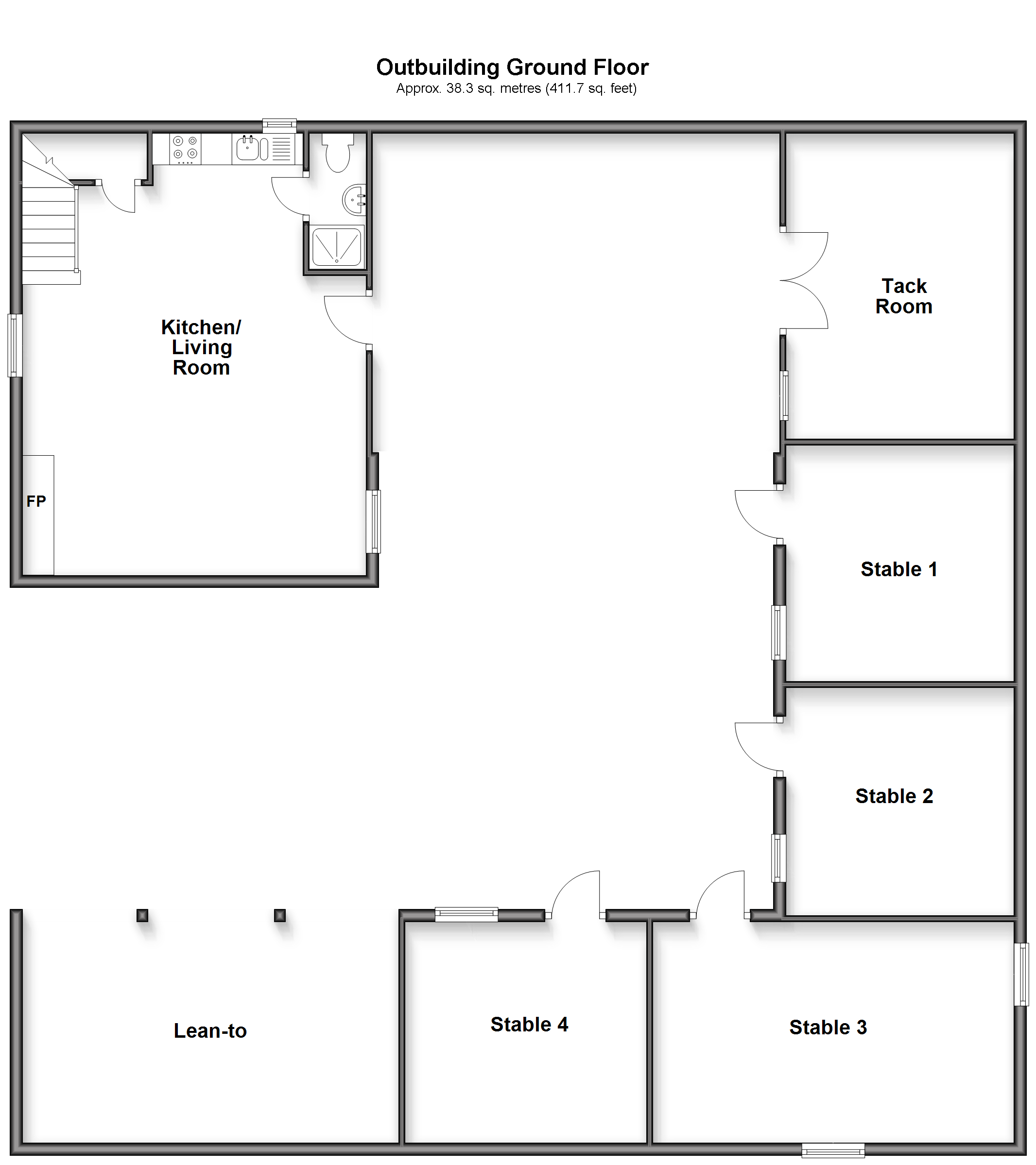 The property also boasts a spacious kitchen and dining area, complete with a range of fitted wall and base units and dual-aspect windows that capture the beauty of the surrounding landscape. A family bathroom serves the main house, providing comfort and practicality.