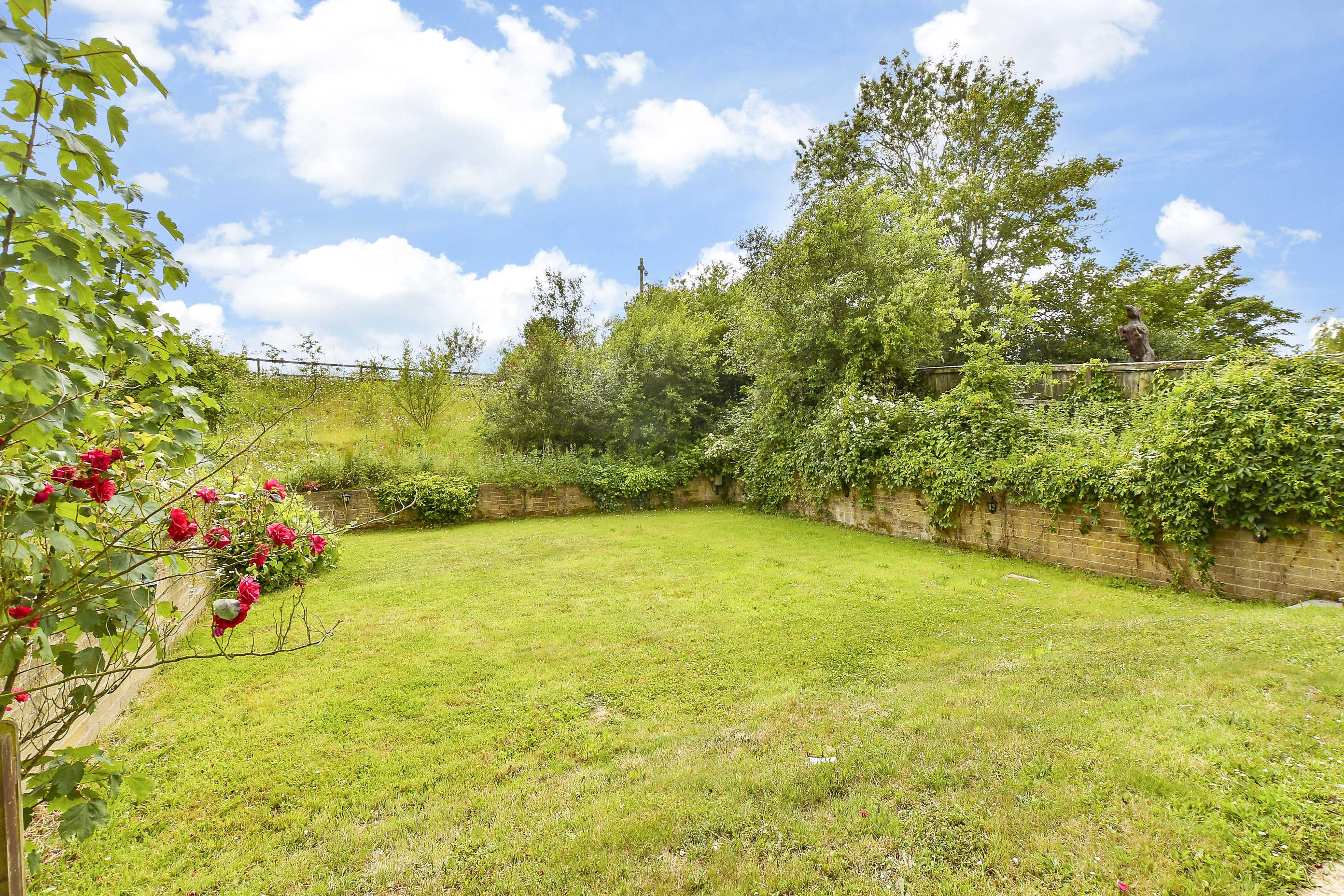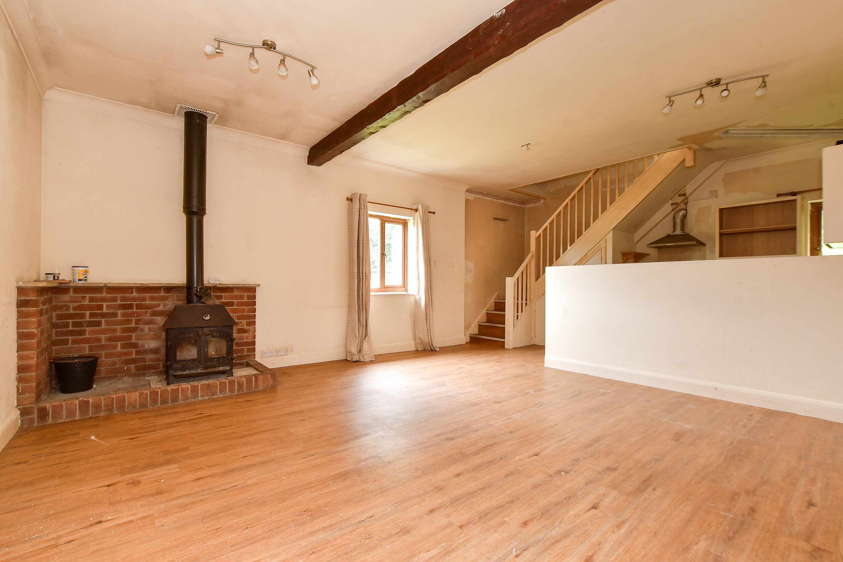 At the heart of the home is a delightful dual-aspect sitting room with a wood-burning stove, creating a cosy ambiance while also providing central heating to the home via a radiator system. French doors open onto an enclosed rear garden, perfect for private outdoor relaxation or entertaining guests.