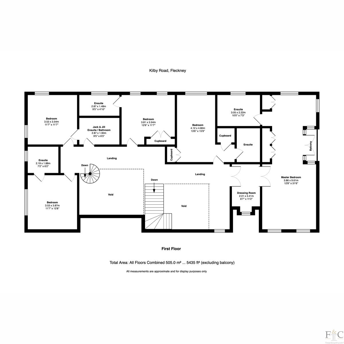 - Triple-aspect principal suite with balcony, freestanding copper bath, ensuite & dressing room