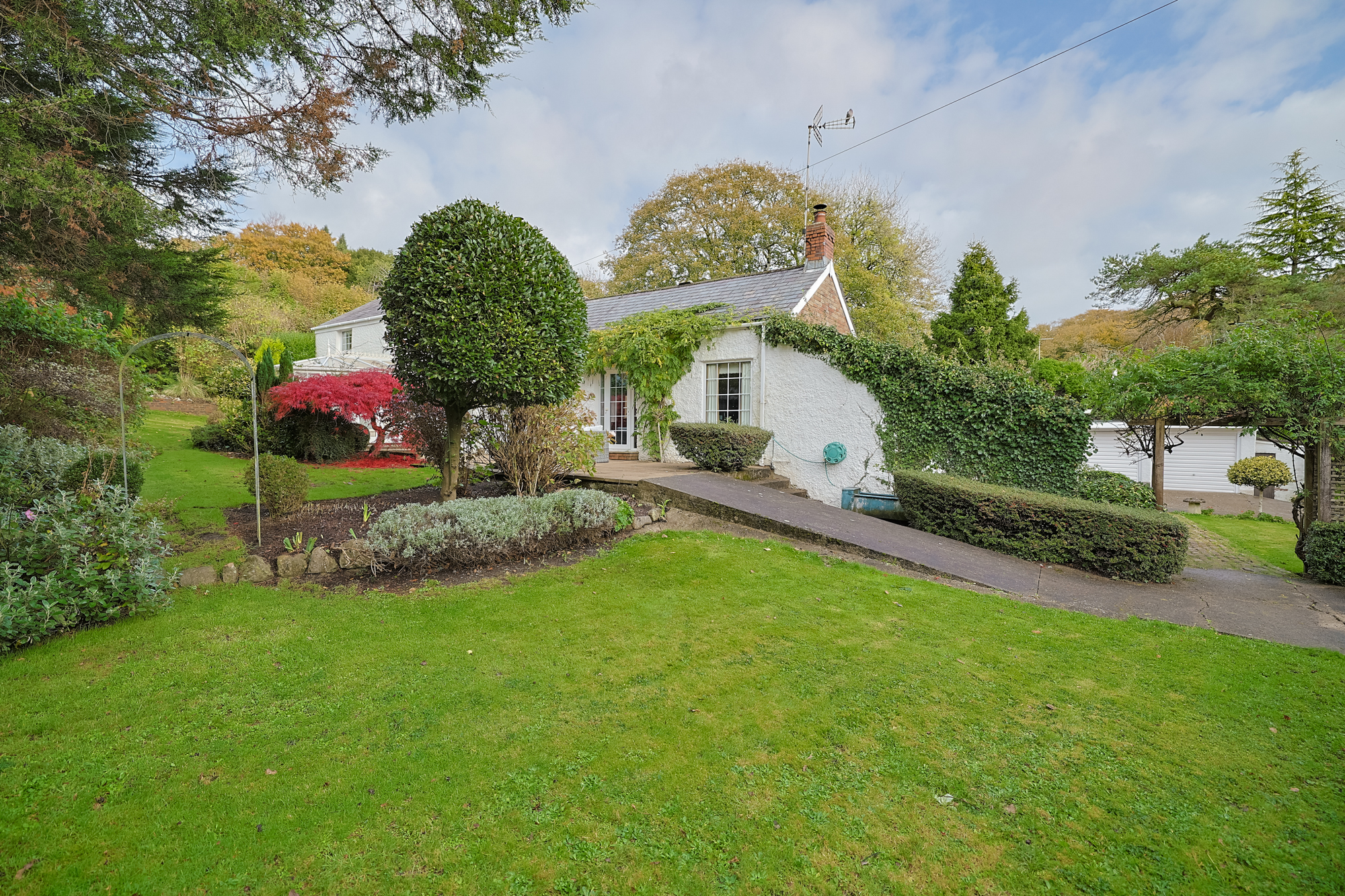 Surrounding the home are beautifully maintained level lawns, expansive patio, and mature, colourful planting that adds year-round charm and character. The private and peaceful setting provides multiple outdoor seating areas, ideal for entertaining friends, enjoying alfresco dining, or simply relaxing while taking in the views of the grounds. Winding paths lead through the gardens, creating a sense of exploration and tranquillity, and extend to a small paddock with lush grass, perfect for children to play safely, pets to roam, or for small-scale equestrian use. The combination of open, versatile spaces and intimate garden corners makes this a true outdoor haven, offering both practicality and a sense of escape from everyday life.