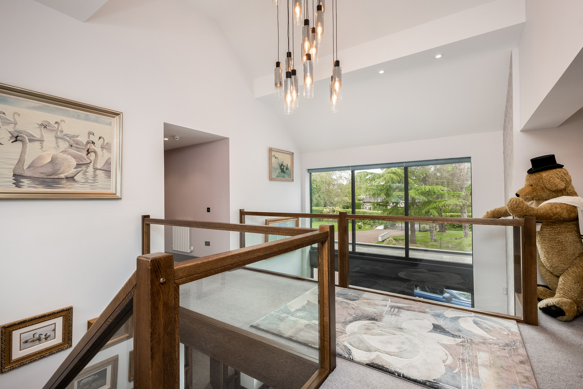 The galleried landing with glazed balcony separates the bedroom accommodation into two wings. The right wing gives access to the master bedroom suite and a further double bedroom with ensuite shower room.