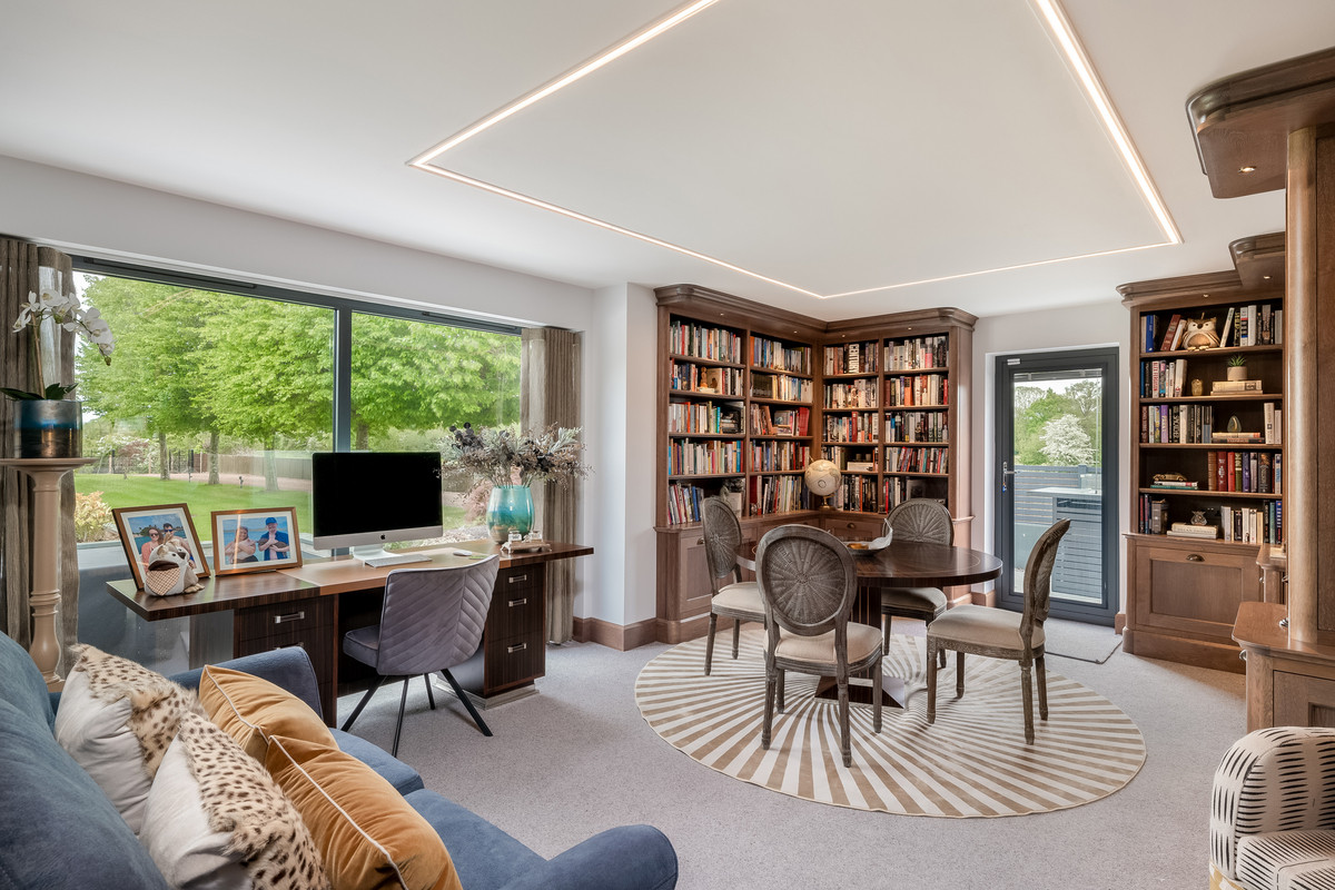 - Home office, games room with bar and library