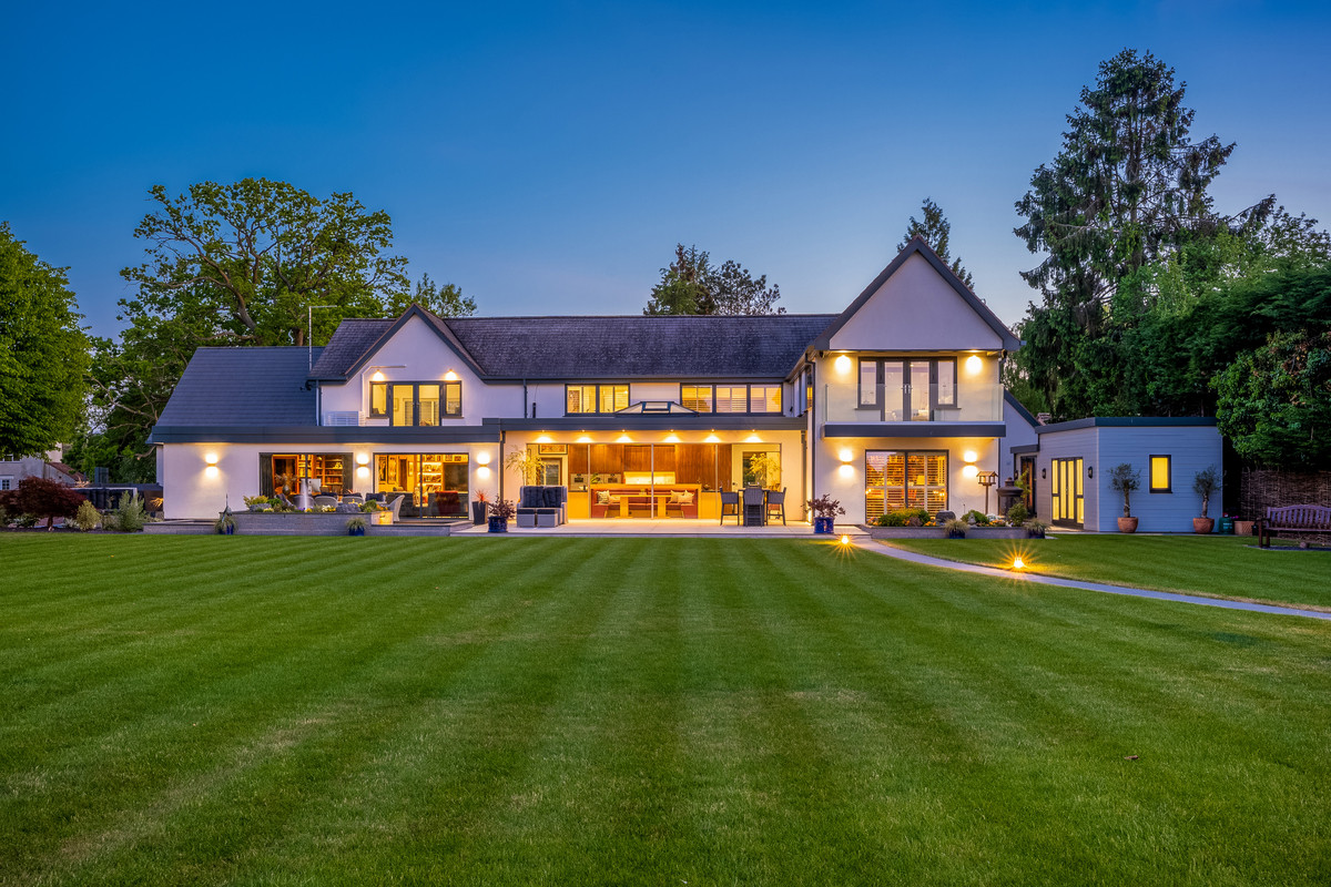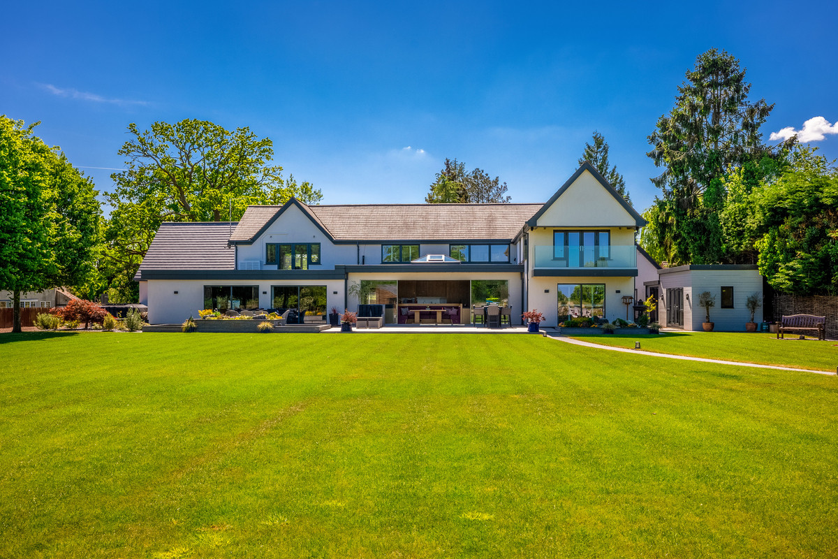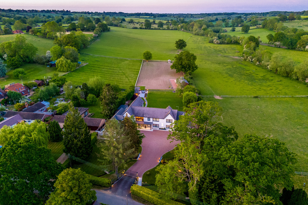 This spectacular country home set in circa 1.7 acres of beautifully mature grounds and surrounded by open countryside has luxurious finishings and features spacious flexible living accommodation, five-bedrooms all with ensuites, a separate gym, air-conditioned garden room with a fully fitted kitchen and potential for fantastic equestrian facilities or further leisure facilities as desired.