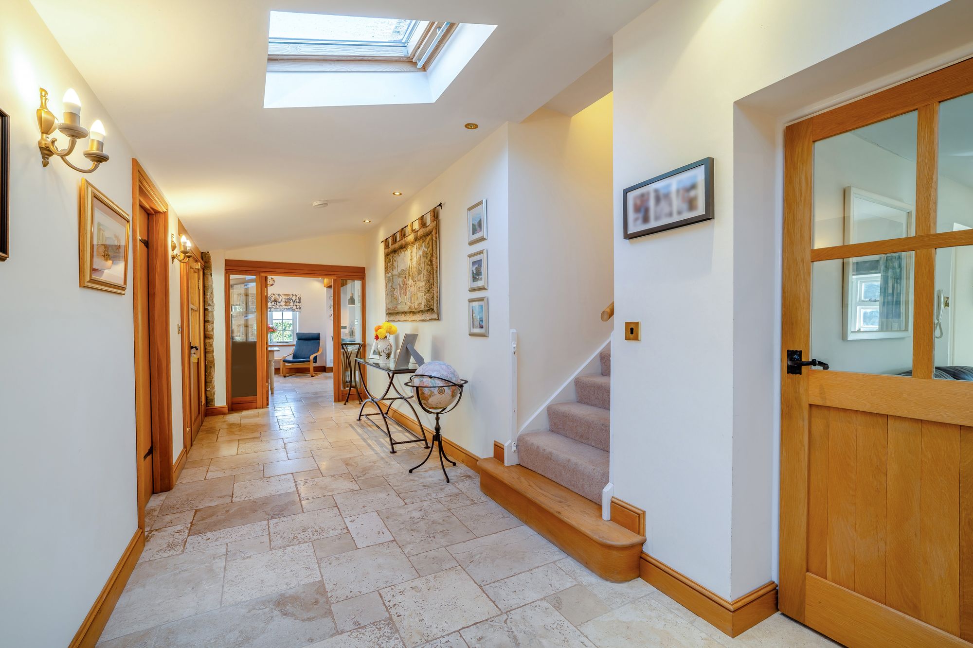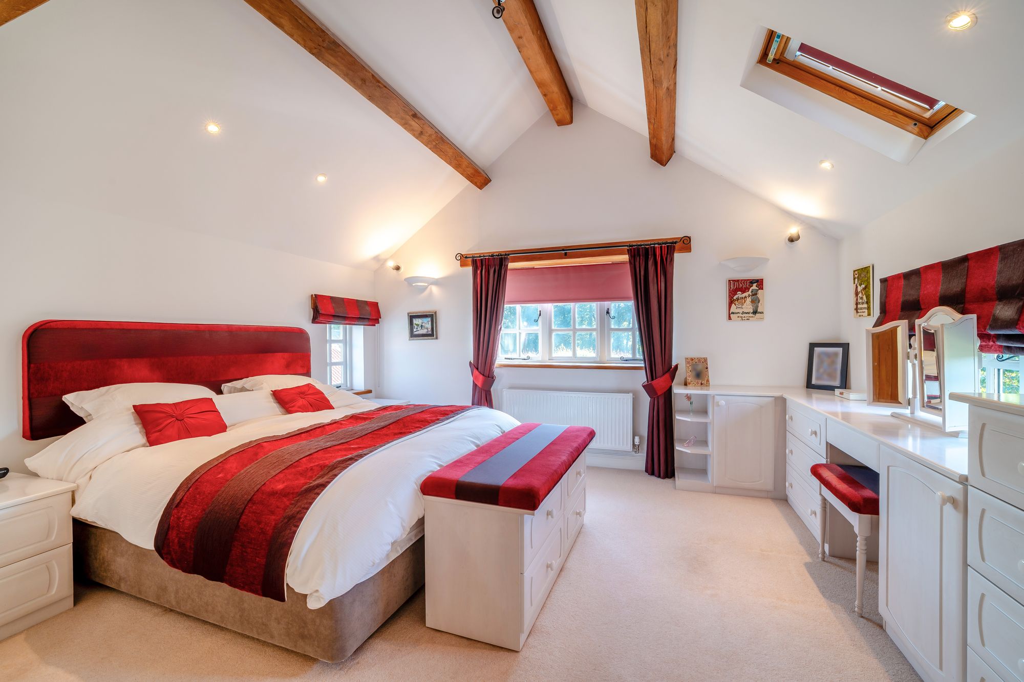 Beyond the house, Wood Farm's 10 acres unfold into a delightful mix of landscaped gardens, productive areas and paddocks. The property features vegetable beds, a greenhouse, and anorchard, along with a chicken house and run. The paddocks have regularly hosted donkeys in the past, adding to the charm of this rural haven. Meandering paths connect different corners of the garden, from the ornamental pond to the oak-framed pergola a striking addition that makes al fresco entertaining a joy.