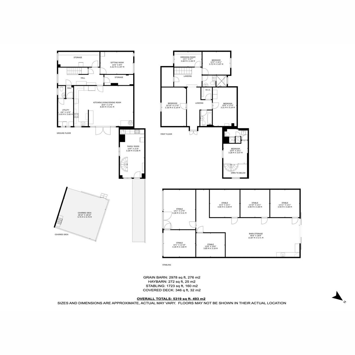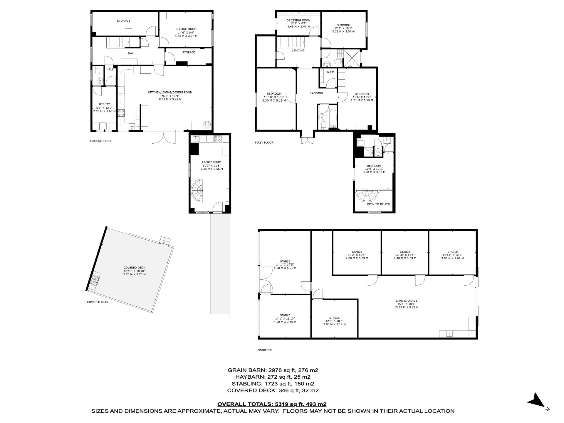 The grounds extend to approximately 6 acres, offering superb equestrian or leisure potential. There is a spacious outbuilding, currently offering six stables including foaling box and a large storage area. There are also several field shelters which would remain. There is a large gravel area for parking for both the equestrian facilities and Grain Barn.