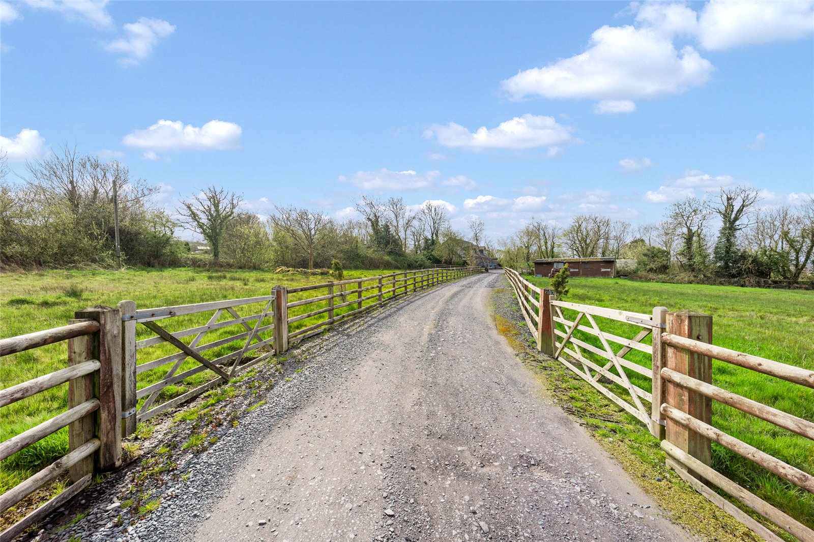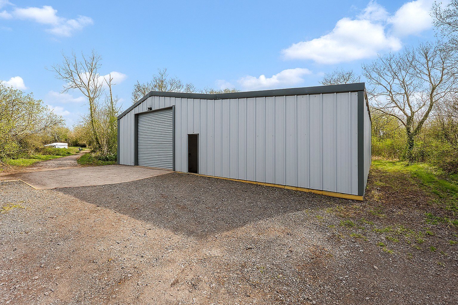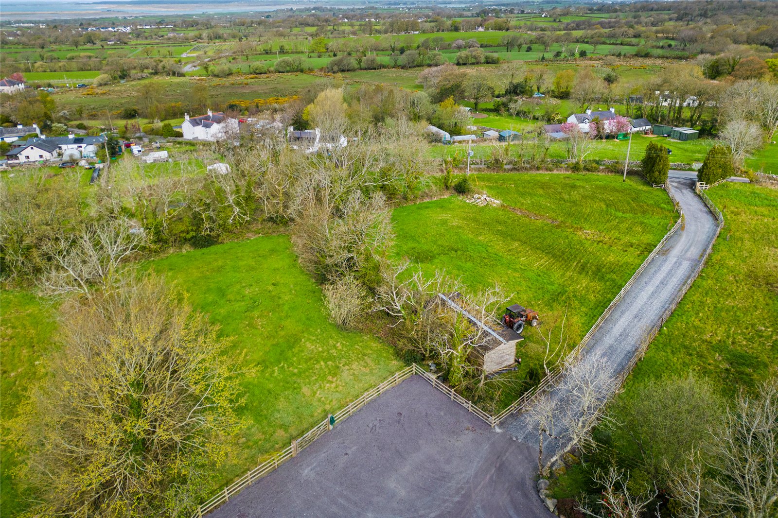 Ty Newydd Farm is approached via a private driveway, which leads to a spacious parking yard, providing ample parking for numerous vehicles. In addition, off the drive is a double garage, with electric doors and elevated storage above.