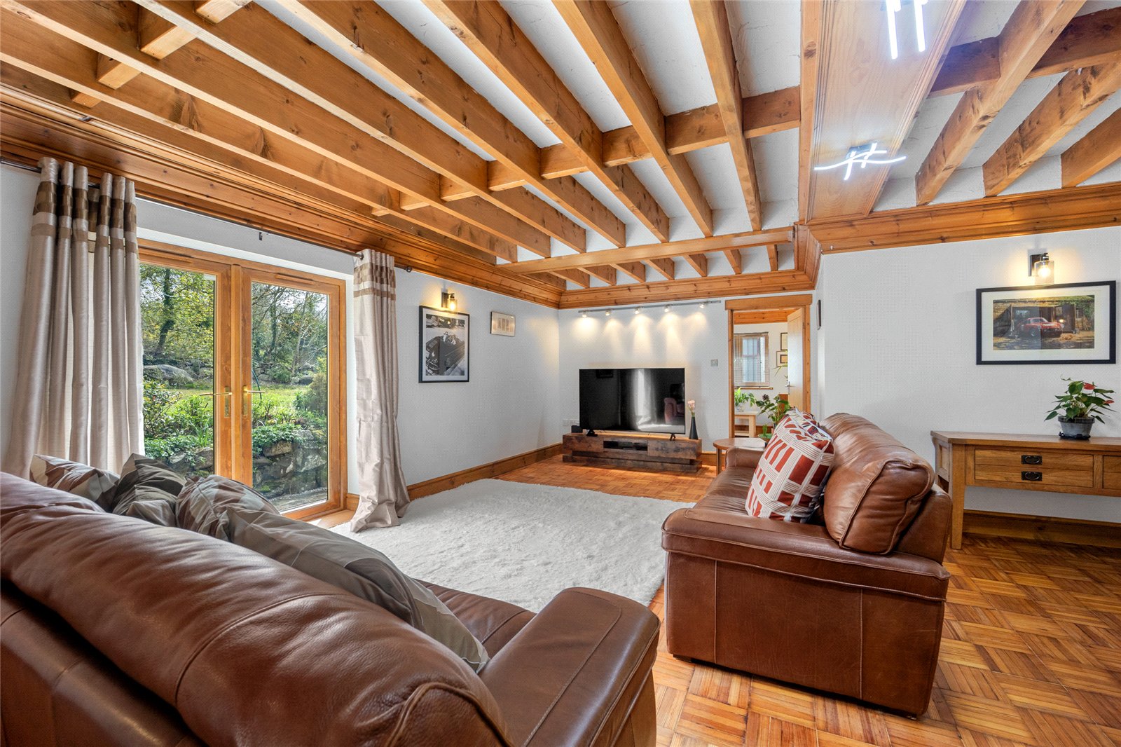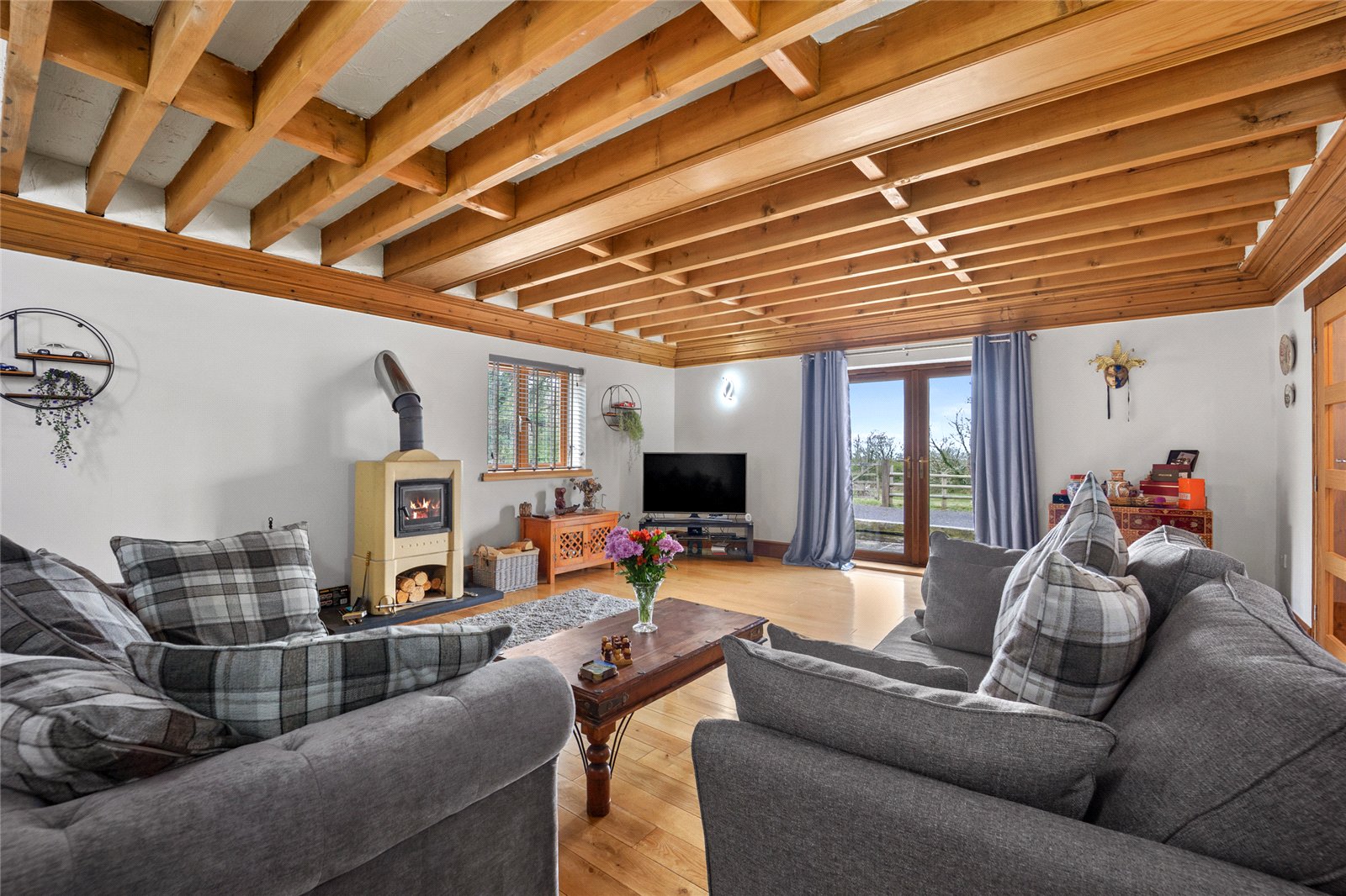 To the rear of the property lies a substantial and beautifully established garden, thoughtfully arranged with a variety of mature trees and shrubs that provide colour, texture and year round interest. This verdant setting creates a strong sense of privacy and seclusion, while the garden itself blends effortlessly into the wider landscape beyond, offering a peaceful and natural backdrop that enhances the home's rural charm and connection to the surrounding countryside.