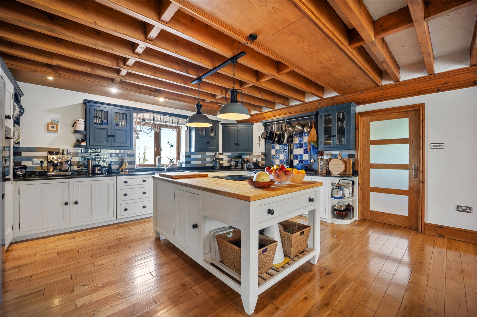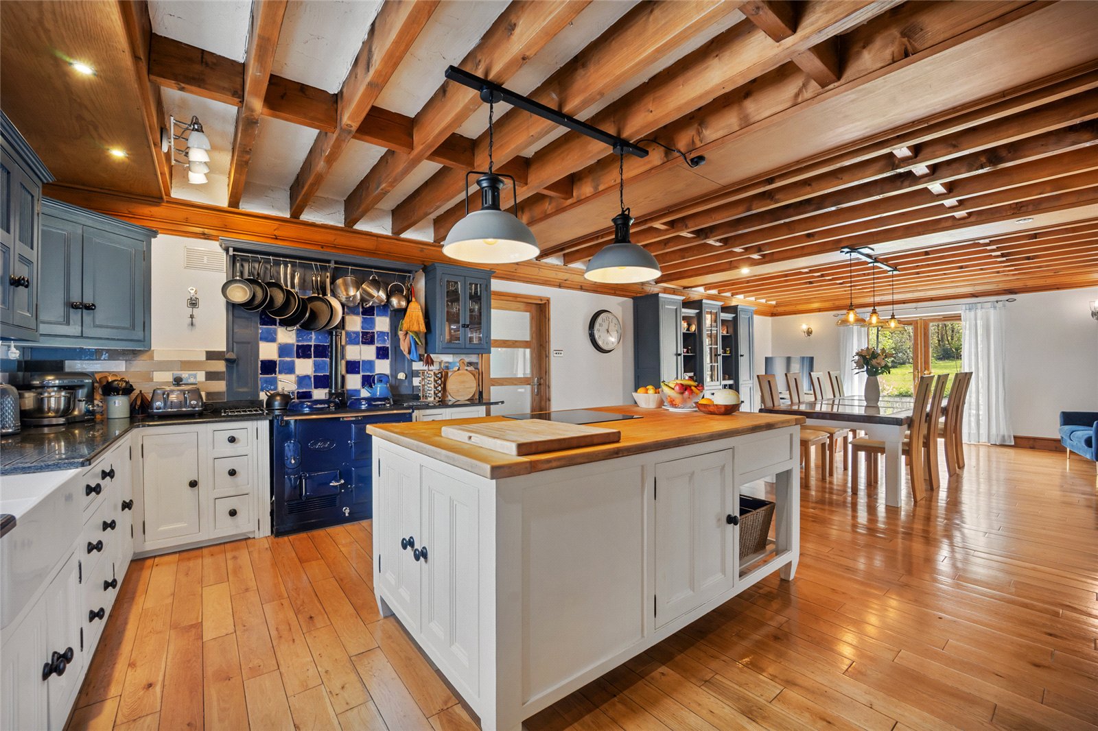 The kitchen is superbly appointed with an extensive range of fitted floor and wall units, an Aga, a cooker and an induction hob, blending traditional charm with modern functionality. A door from the kitchen leads into a practical utility and boot room, together with a cloakroom, ideal for daytoday country living.