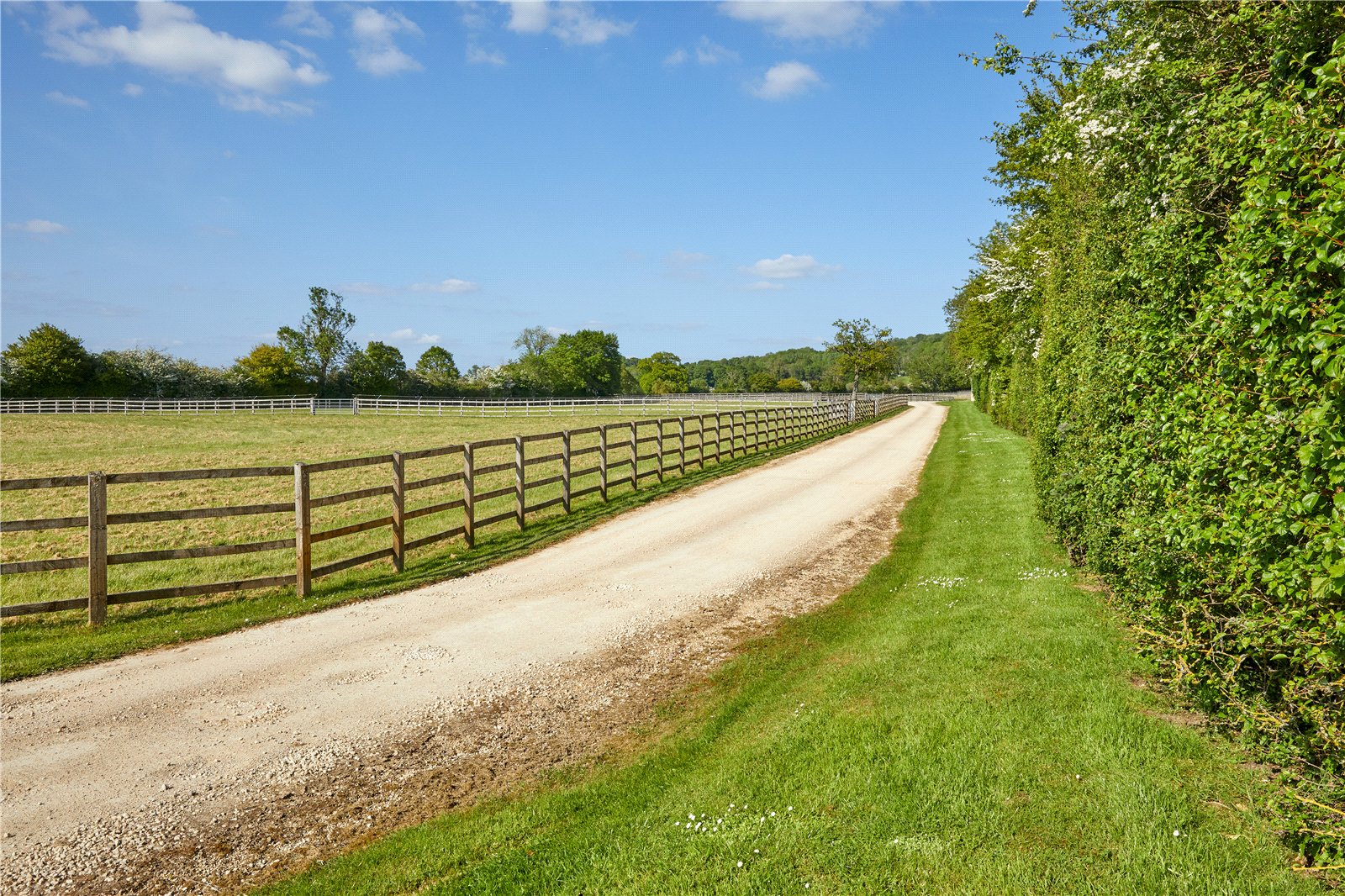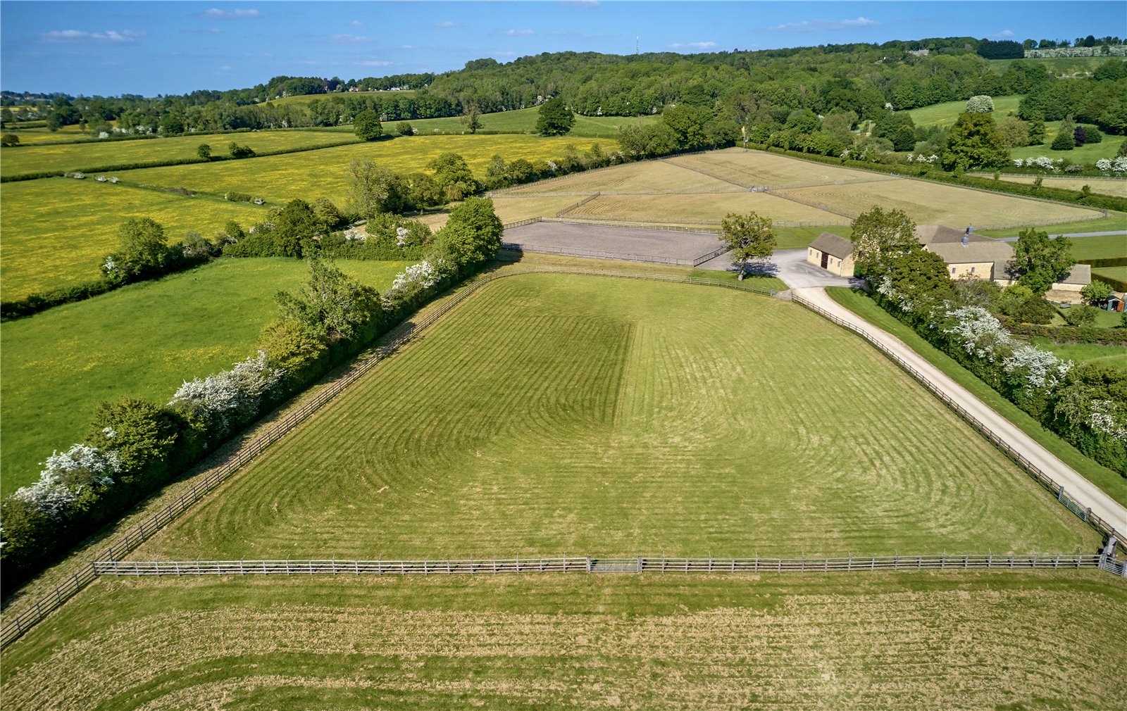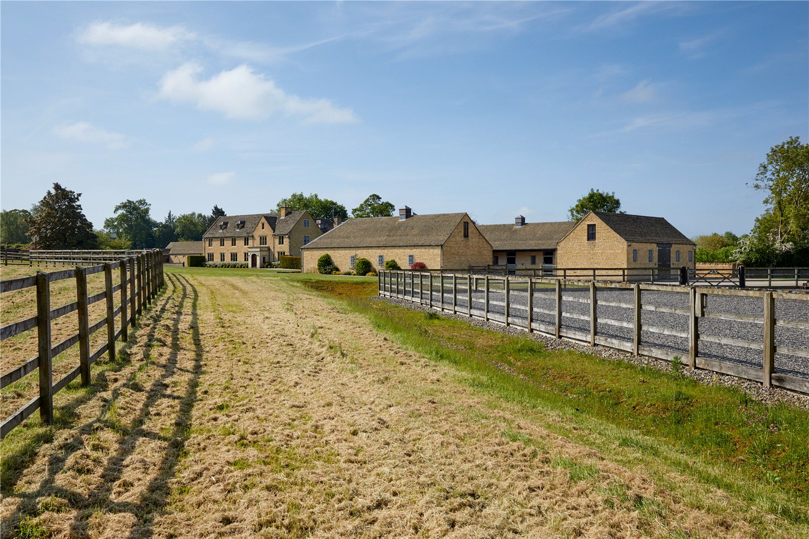 similarly laid out post and rail paddocks.