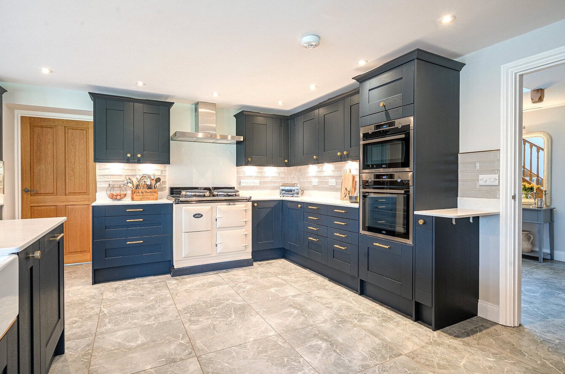 White Gate Farm is a fantastic example of a traditional farmhouse transformed into a stunning family home. Thoughtfully extended and beautifully improved, it offers the perfect balance of sociable spaces to gather, dine and entertain, alongside quieter rooms to relax, work, or unwind in peace. The ground floor benefits from underfloor heating throughout, creating a welcoming ambient warmth. At the heart of the home lies the impressive open-plan kitchen, dining and family room, fitted with a stylish range of integrated appliances, a large breakfast island, quartz worktops, an electric Aga, and elegant feature lighting. With plenty of space for both formal dining and comfortable seating, it’s a wonderful setting to enjoy views with doors providing direct access over the gardens and paddocks.