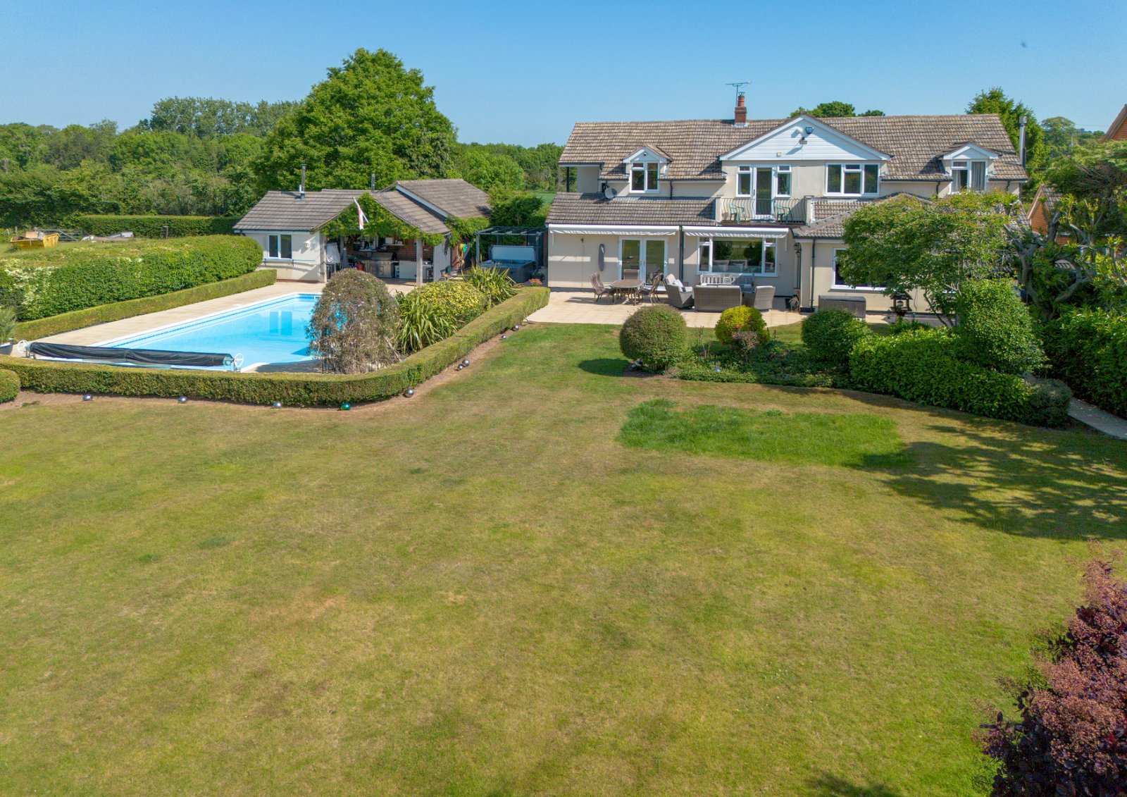 Impressive detached family home situated in a sought after convenient location with gardens, grounds and paddocks extending to approximately 2.20 hectares (5.54 acres) together with outdoor swimming pool, changing room and sauna complex and adjoining outdoor kitchen area with pizza oven, tractor store, stabling and stores. Coming to the market for the first time in 18 years and offered with no onward chain, this is a rare gem of a property that presents an exceptional opportunity.