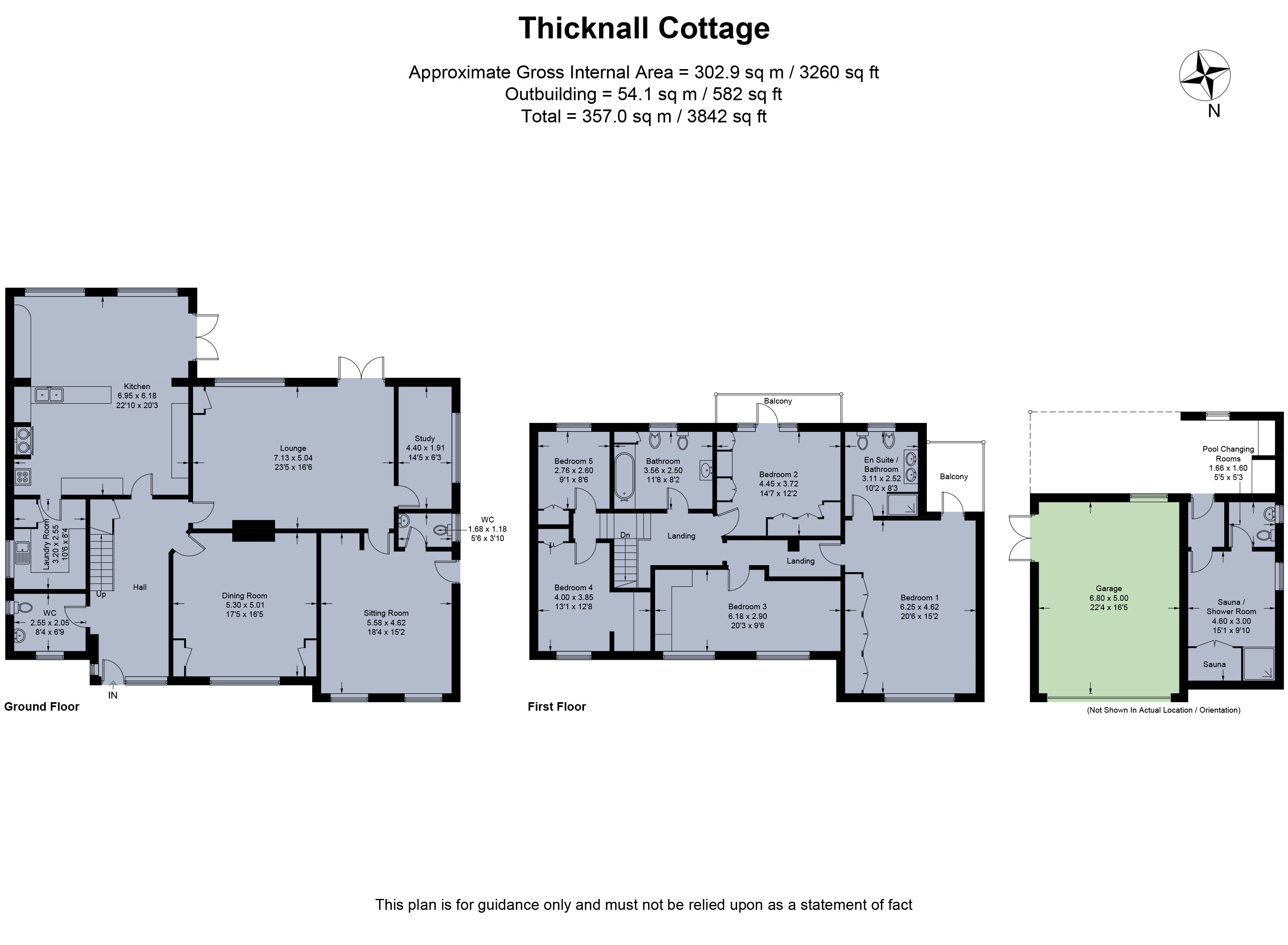 • Changing room complex with separate cloakroom, Nordic sauna and fully tiled shower recess with electric Mira shower.