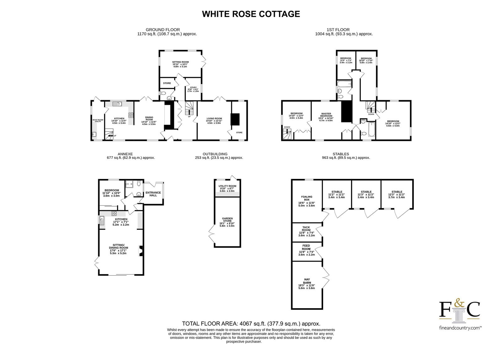 - Total approximate floorspace of 4067 including all out buildings and annexe