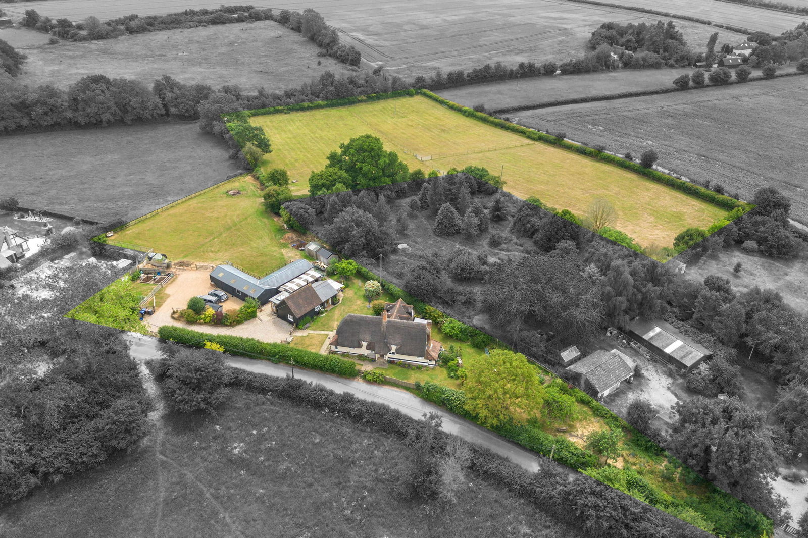 - Equestrian facility including stables and outbuildings, set within approximately 5 acres