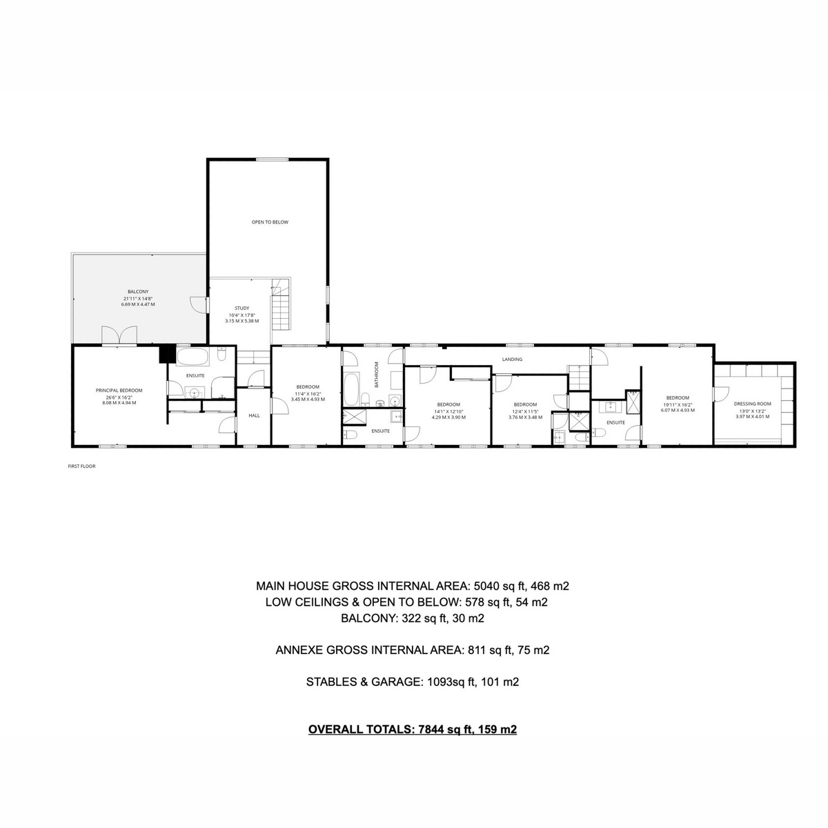 - Six bedrooms and six bathrooms arranged over generous proportions