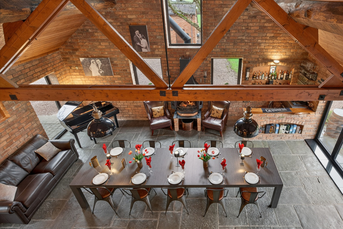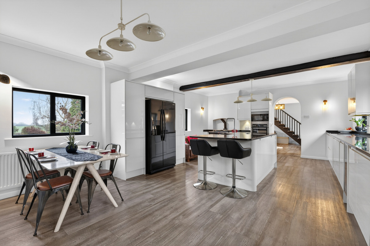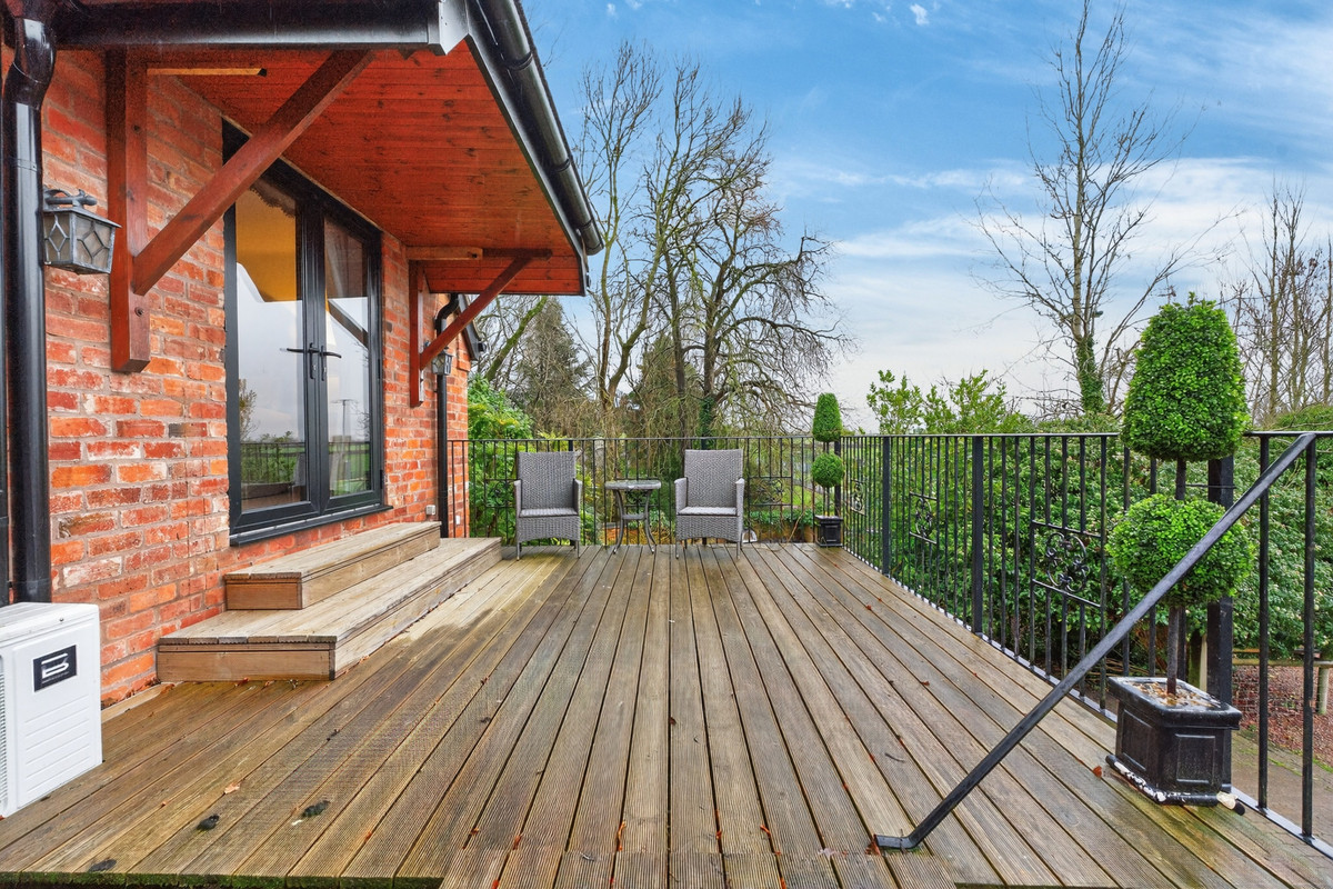 Oaklands is an exceptional gated country residence in the highly sought-after hamlet of Danes Green, offering a rare combination of rural tranquillity, outstanding accommodation and superb connectivity. Set within approximately 1.6 acres of beautifully landscaped private grounds and paddock land, the property commands far-reaching Worcestershire views and provides an impressive lifestyle opportunity. Arranged over two floors, the main residence offers six generously proportioned bedrooms and six bathrooms, with the principal suite featuring a private balcony deck that overlooks the surrounding countryside. At the heart of the house lies a striking open-plan kitchen and dining space, complemented by a separate back kitchen and large laundry room. Elegant reception rooms include a formal dining room, a study and two cosy snugs with wood-burning stoves. The property also benefits from integrated double garaging and a substantial one-bedroom annexe, The Cottage, with its own council tax band, ideal for guests, family or income potential. Externally, the grounds include stabling for five horses, a paddock of circa 0.75 acres, ample parking and attractive outdoor seating areas, all accessed via secure electric gates.
