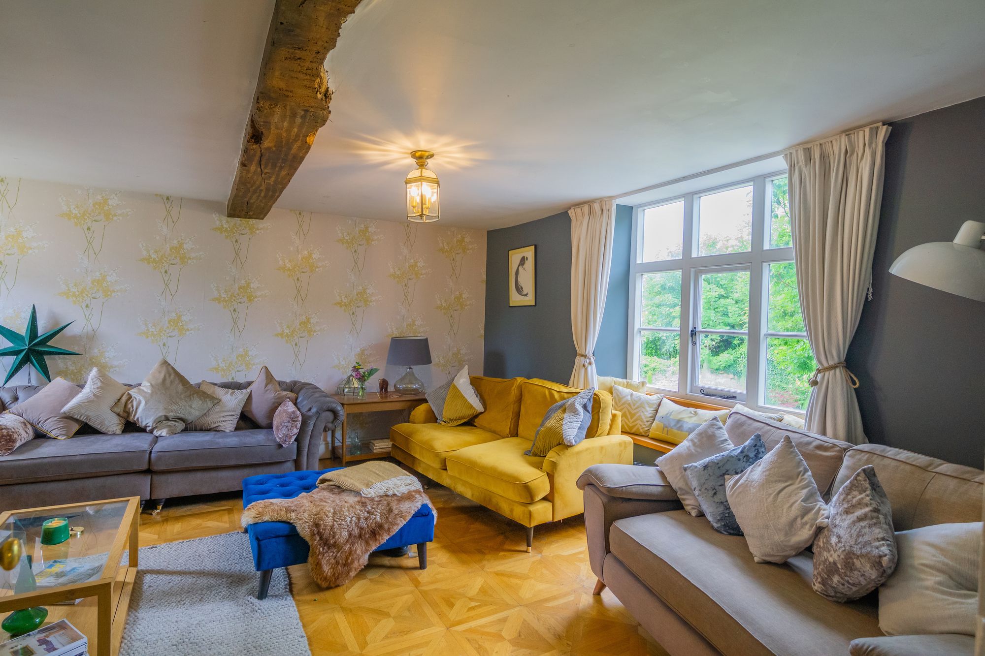 Dursley Cross Farmhouse has been extensively renovated by the current owners over the past decade. Parts of the property date back to the 1600s and 1700s, and it retains many original features including beautiful fireplaces, exposed ceiling beams, timber doors, wide floorboards, and flagstone flooring. Yet it also benefits from modern eco-conscious additions, such as double-glazed windows throughout, comprehensive insulation, and a ground source heat pump.