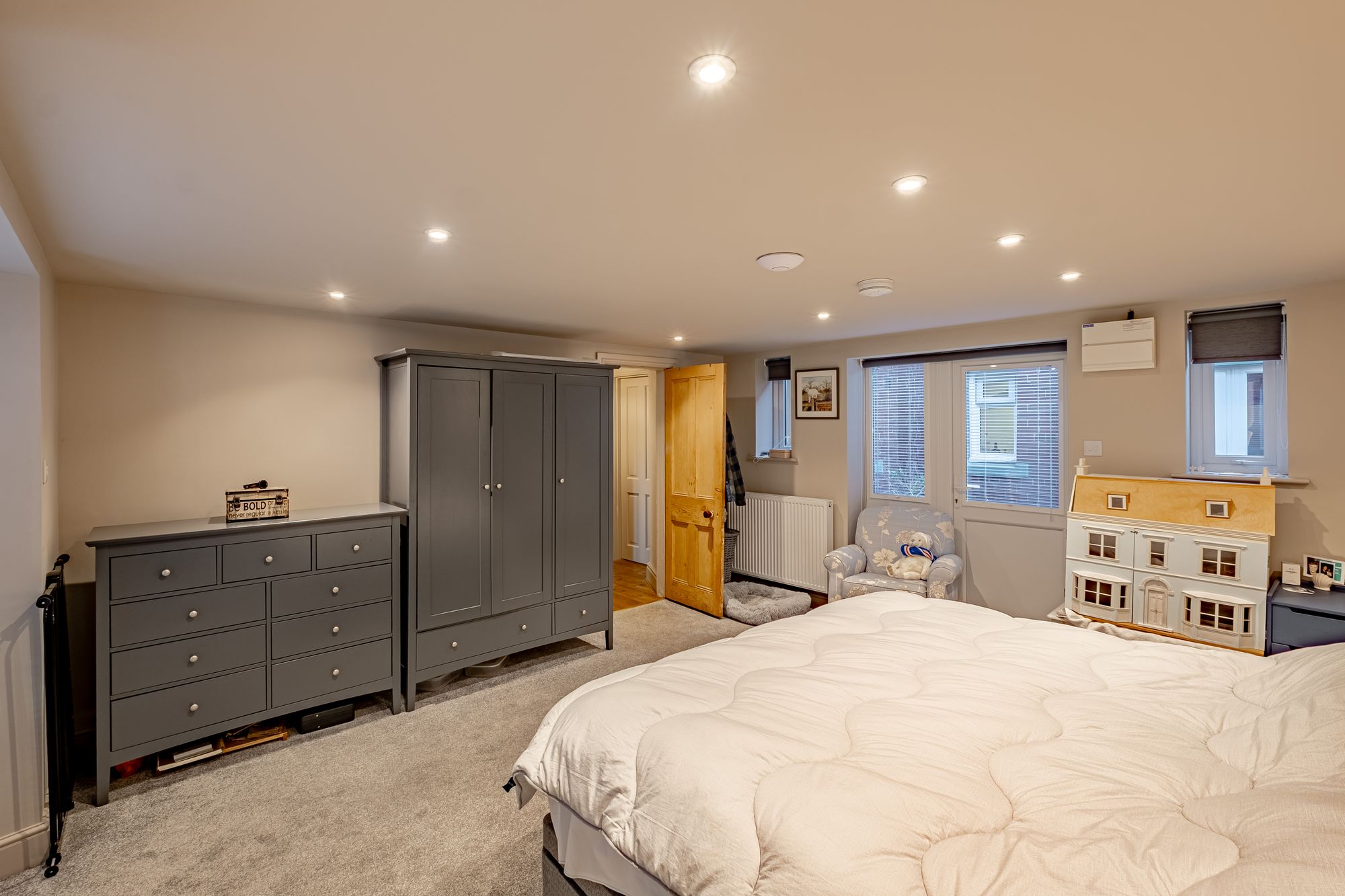 Positioned to provide both privacy and convenience, the annex offers a generous double bedroom with patio doors opening directly onto the garden and rear yard. The layout allows direct access to the kitchen and utility without disturbing guests — ideal for managed hospitality use.