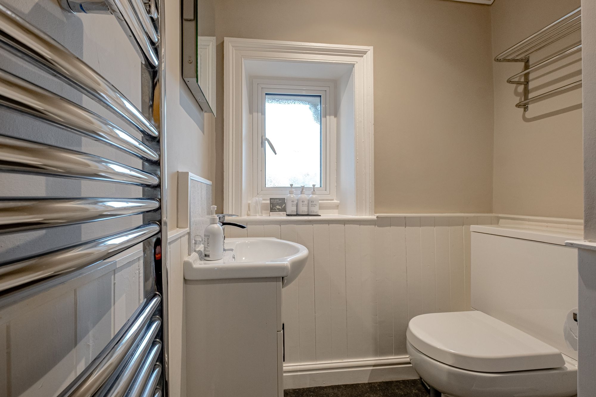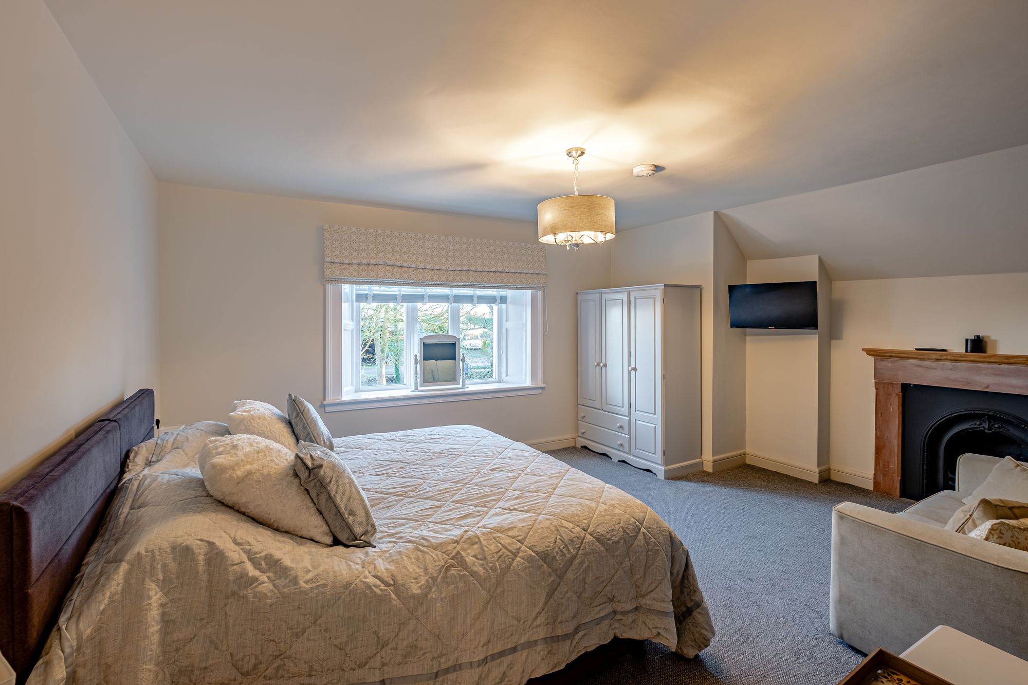 The first floor currently comprises five beautifully styled double bedrooms and one single bedroom, all benefitting from en suite facilities. The rooms enjoy a variety of outlooks — from mature gardens and surrounding countryside to far-reaching views across the Solway coast.