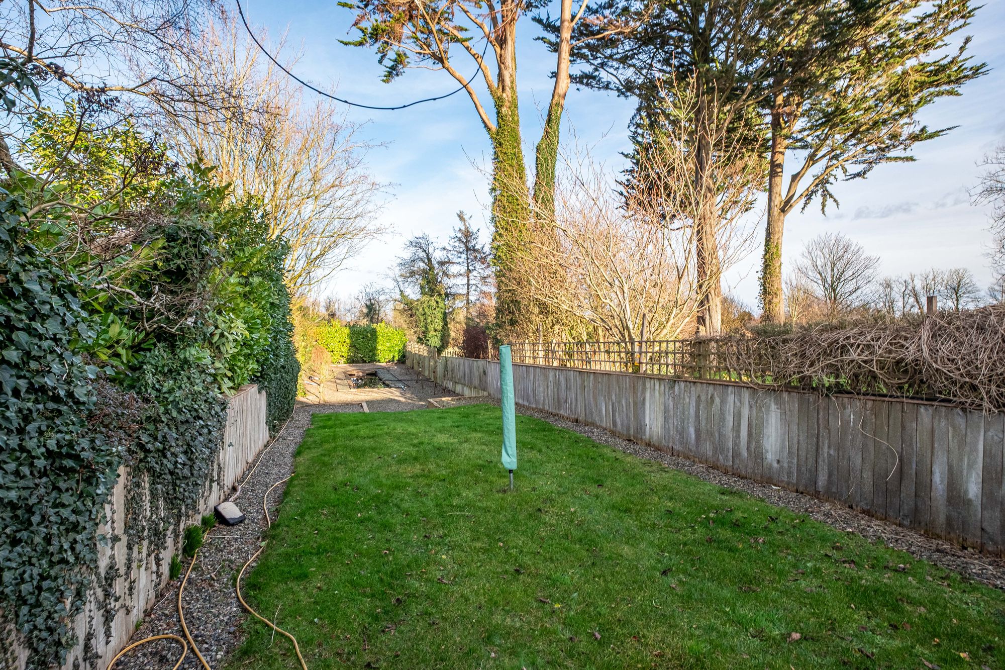 To the lower section of the garden lies a pond area — an ideal setting for a kitchen garden, summer house, studio or simply a peaceful seating area.