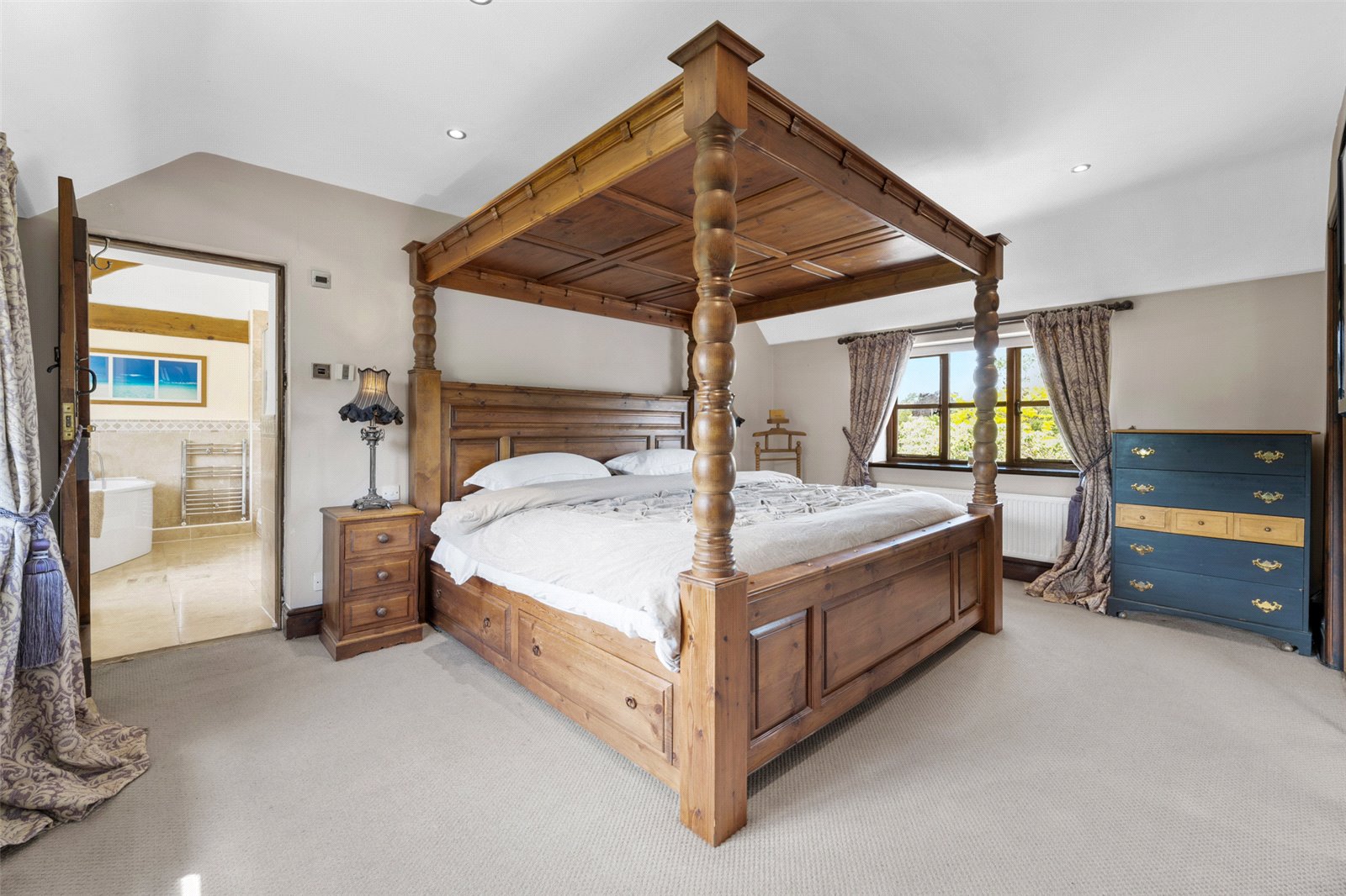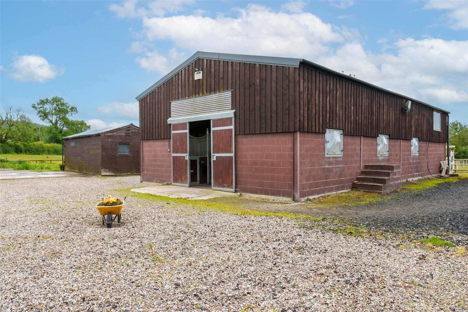 • Complete equestrian facilities include Olympic scale sand and rubber ménage enclosed by fencing, primary stable block with 6 stables, stores, wc and tack room with games room above, a secondary stable with 2 boxes and tack room.